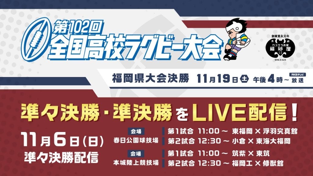 準決勝の2試合については11月6日(日)の結果により対戦相手が決まり次第RKBオンライン(https://rkb.jp)でお知らせし、当日ライブ配信いたします。