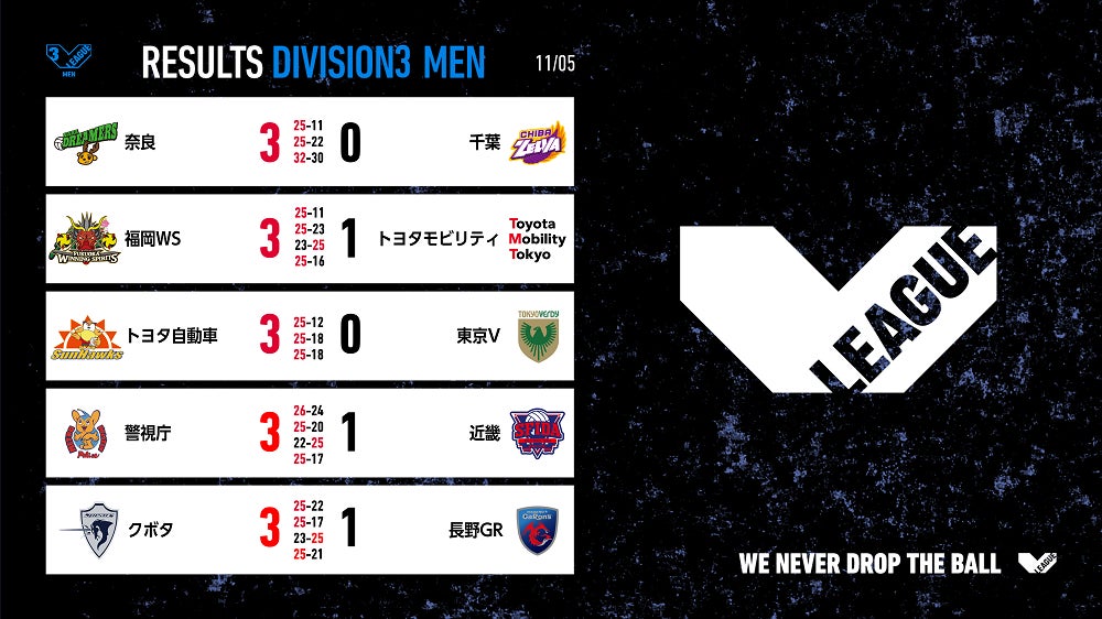 バレーボール国内最高峰リーグ V.LEAGUE【11月5日の試合結果】