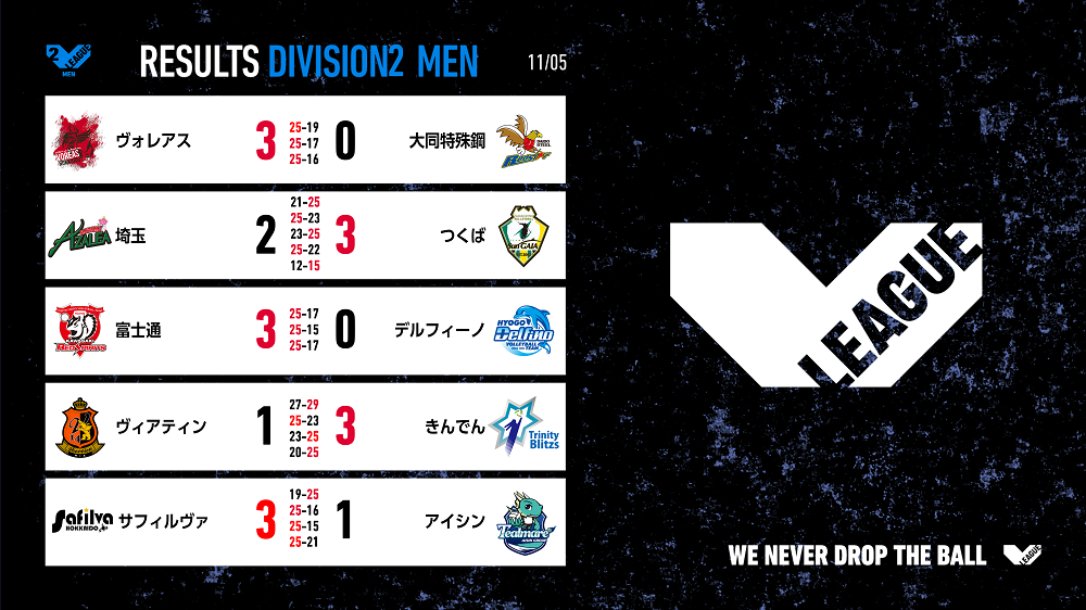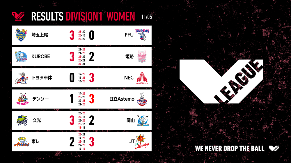 バレーボール国内最高峰リーグ V.LEAGUE【11月5日の試合結果】