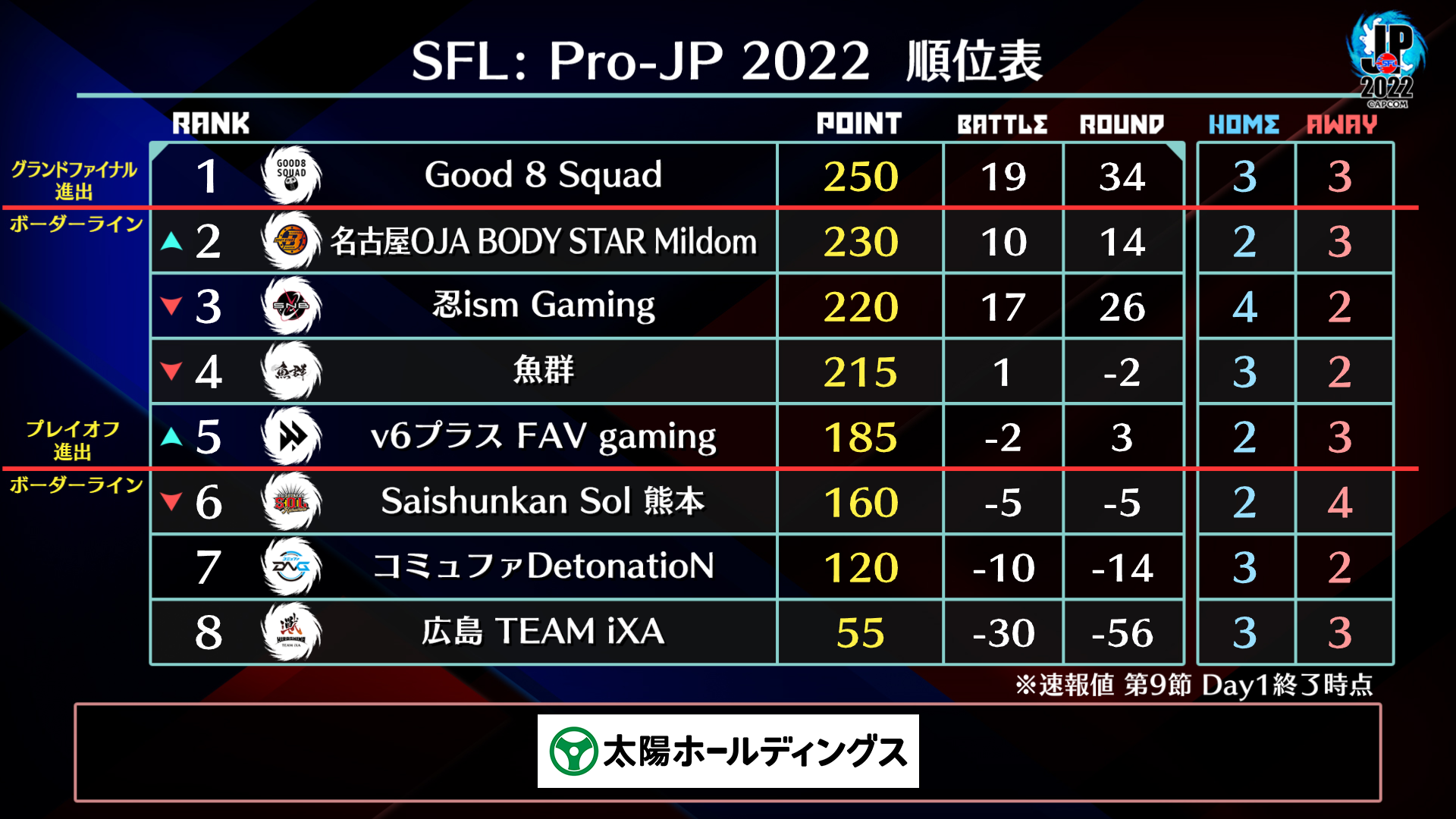 先週、11月4日(金)に行われた「ストリートファイターリーグ: Pro-JP 2022」第9節Day1の試合速報をお知らせいたします。