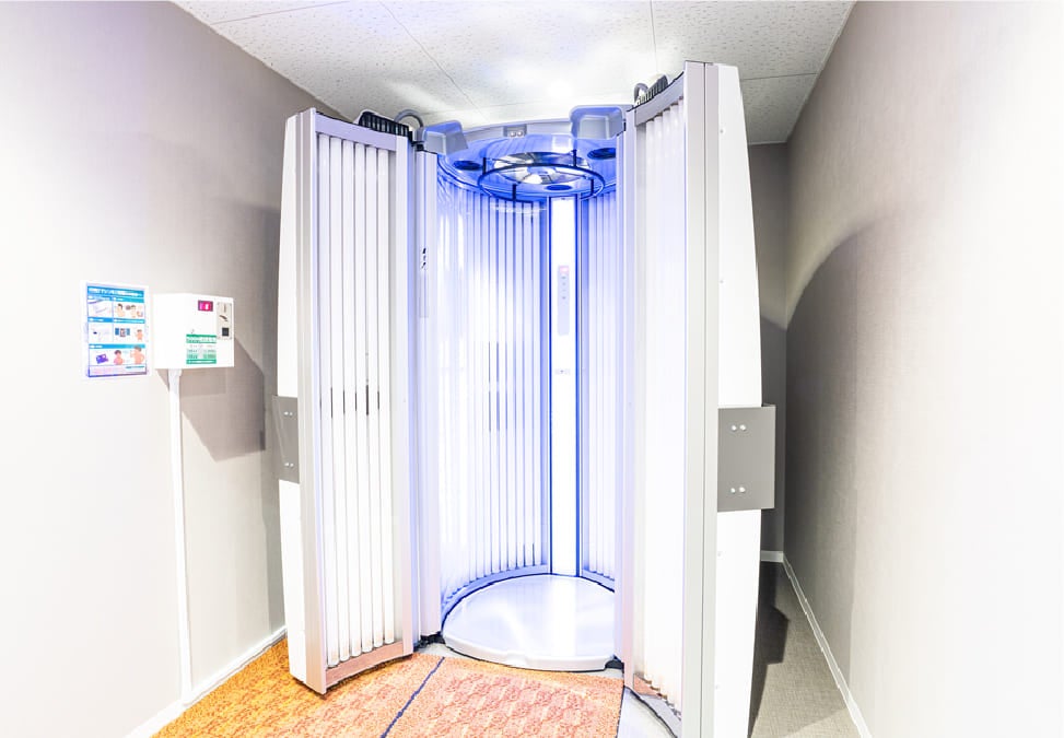 高性能のタンニング(日焼け)マシン導入しています。刺激の少ない紫外線を使用しており、通常の日焼けよりも肌へのダメージが少なく、日焼けの加減もコントロールできます。