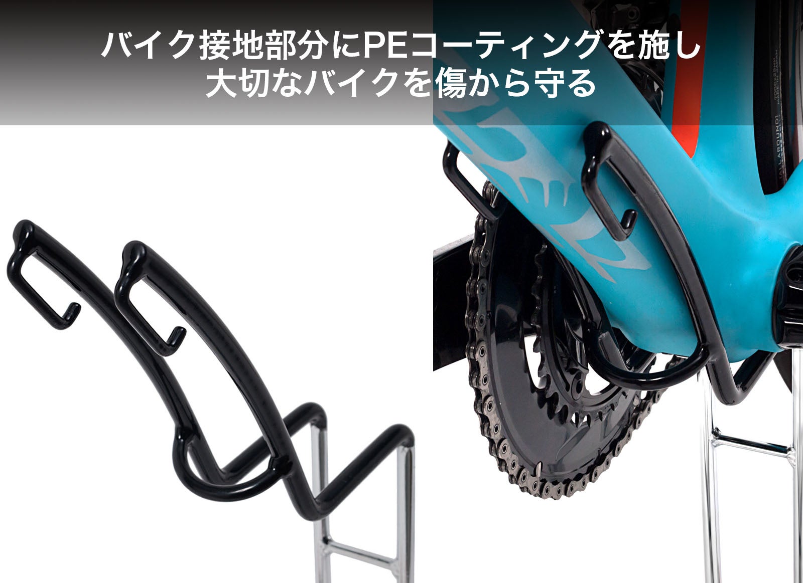 ・材質:本体⇒スチール/バイク接触部⇒PEコート/床接触部⇒ゴム