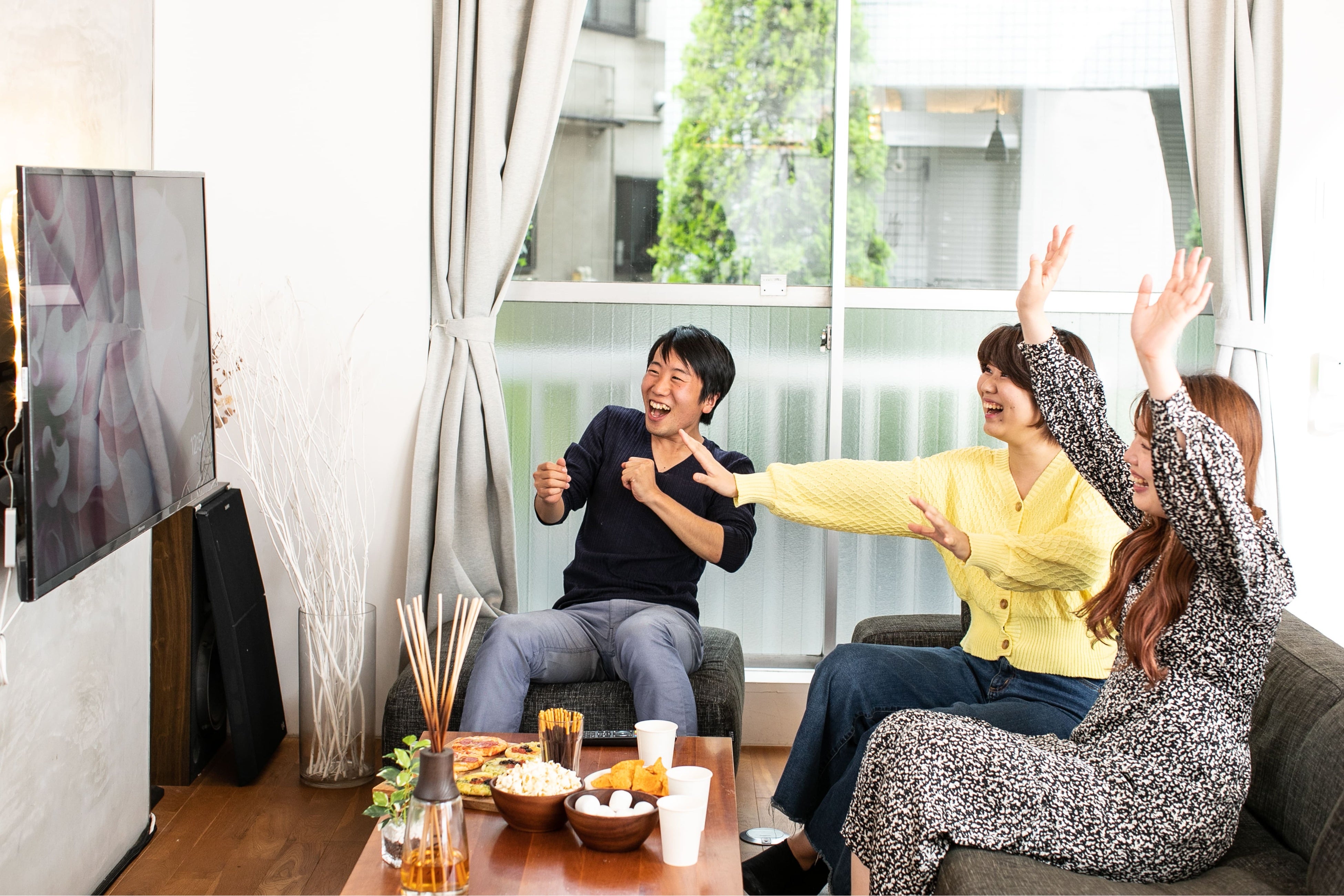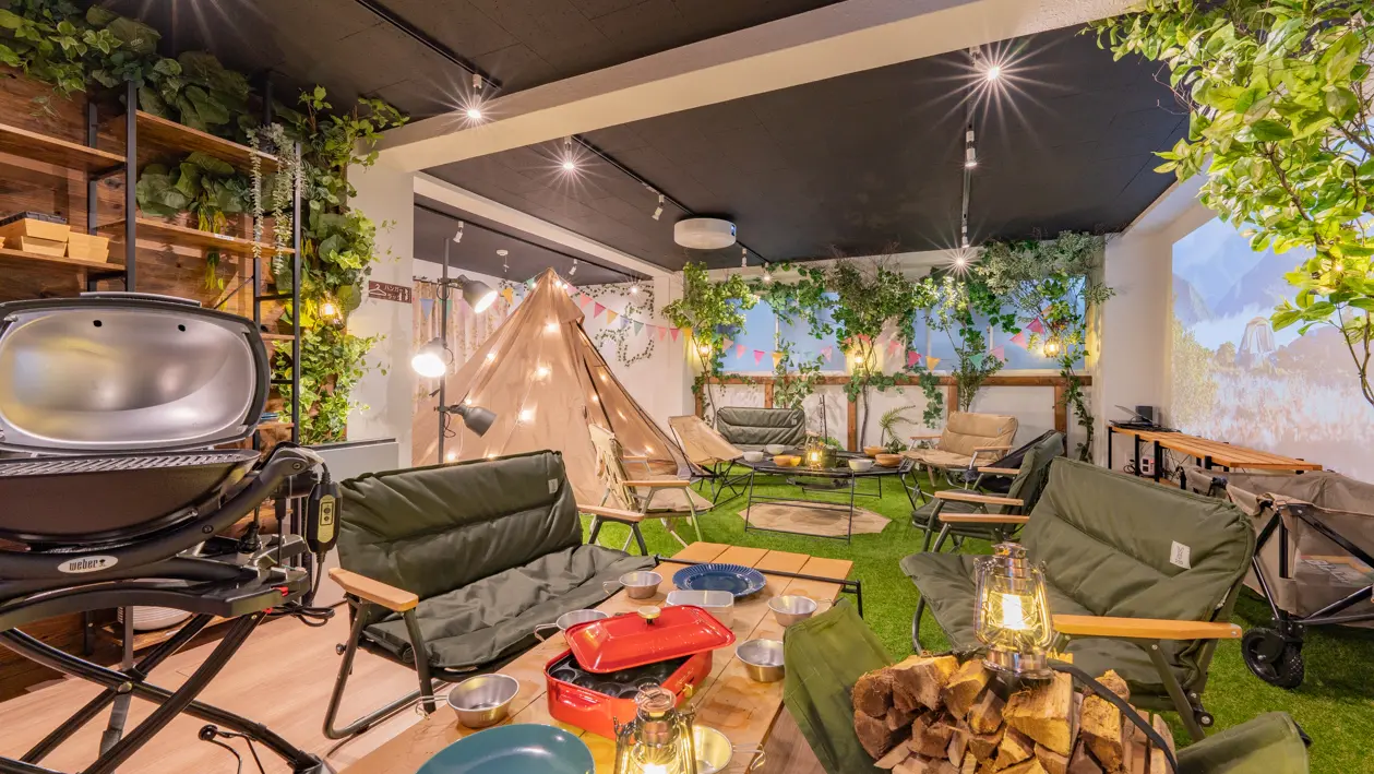 - 室内にいながらピクニック気分。子どもも楽しめるおうちキャンプ空間で試合観戦