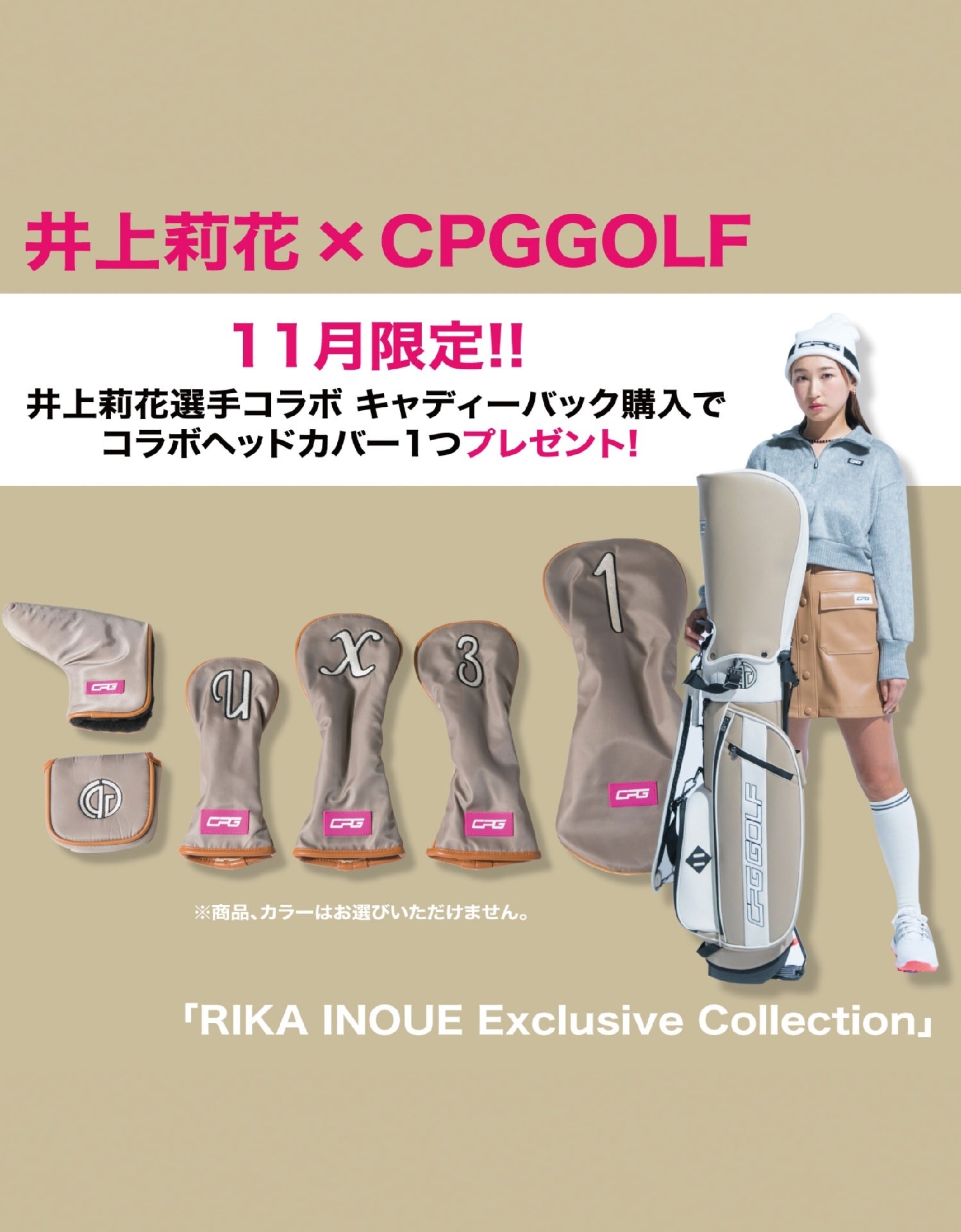 井上莉花プロが素材とカラー・デザインをディレクションしたキャディーバッグ・ヘットカバーシリーズ。