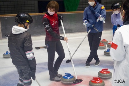 スウィーピングを指導する 鈴木みのり選手(写真提供:JCA)