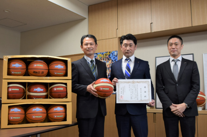滋賀レイクスが実施する「レイクス・バスケットボール寄贈プロジェクト」に賛同し、彦根市教育委員会へバスケットボール31球を寄贈しました。