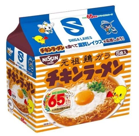 この取り組みは、平和堂が応援する滋賀レイクスとの商品企画にあたり、滋賀県に滋賀工場と関西工場を構える日清食品様の協力を得て実現したコラボ企画です。レイクスブルーをイメージしたカラーリングと今シーズンより新しくなったレイクスのエンブレム、そして、3社のイメージキャラクターを組み合わせた特別なデザインのパッケージが特徴です。