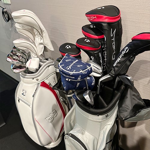 マイクラブを持ち込んでラウンド&練習ができます。もちろん常設クラブで試打してもらってもOK。最新モデルのクラブなども入れ替えて設置していきます。