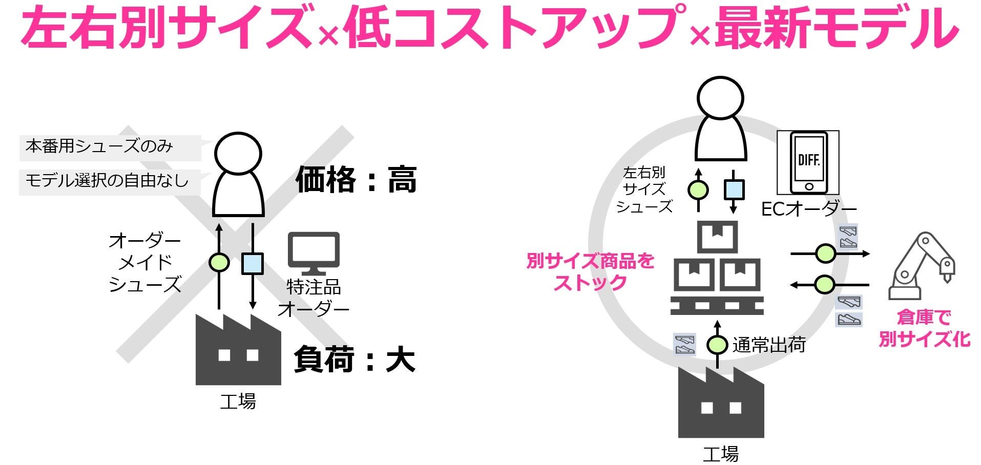 - 補助対象となった左右別サイズのシューズ購買サービス『DIFF.』
