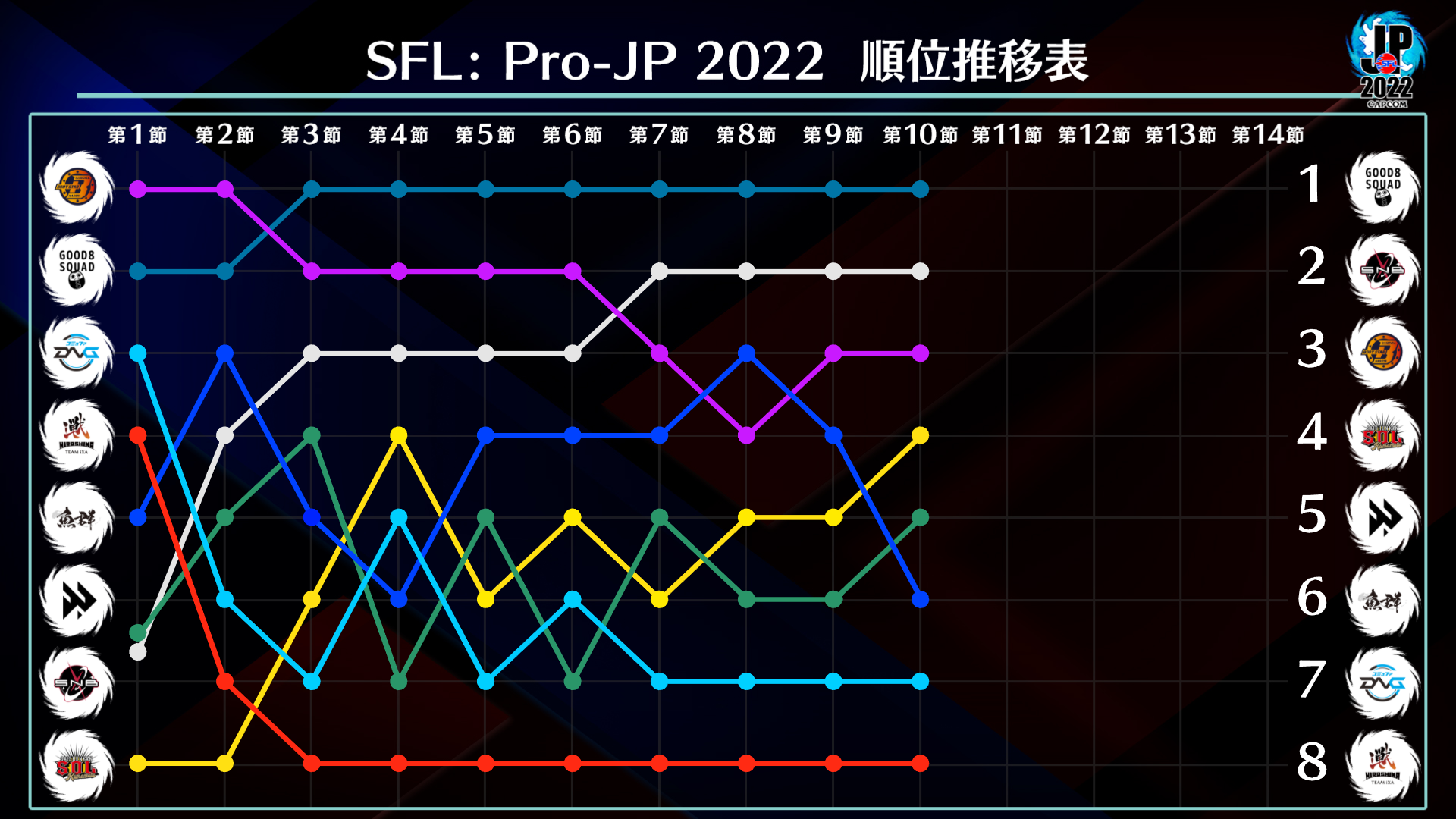 - 現在までの順位表、順位推移表