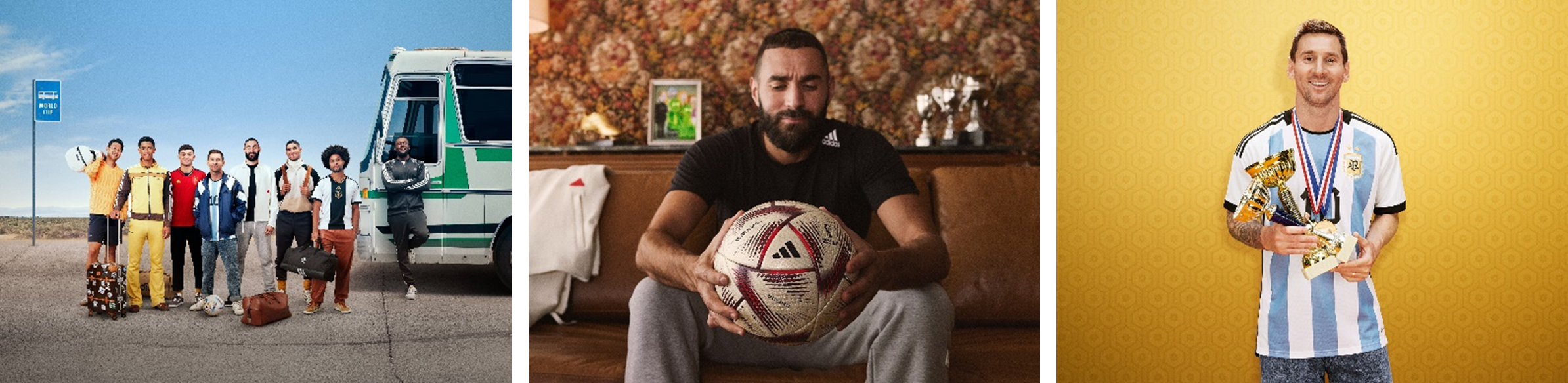 11月14日に公開された新たなグローバルブランドフィルム「The Family Reunion(ザ・ファミリー リユニオン)」には、リオネル・メッシ、カリム・ベンゼマ、アクラフ・ハキミ、ソン・フンミン、ジュード・ベリンガム、ペドロ・“ペドリ”・ゴンザレス・ロペス、セルジュ・ニャブリといった各国を代表する選手たちが登場します。普段は世界各地に拠点を置く彼らが、それぞれの「帰郷」準備を着々と進め、そして再会の地となるカタールへと向かう様子がユーモラスに描かれています。またシーン各所には現在活躍中のアスリートだけでなく、これまでのサッカー界の歴史を築いてきたアディダスのレジェンド達も出演します。映像には過去のワールドカップに関する様々な出来事が散りばめられており、見るたびに新たな発見があるという隠れた仕掛けにもご注目ください。そして大のサッカーファンとして知られるミュージシャンのストームジーが出演およびナレーションとして参加し、世界がひとつになるワールドカップという特別な舞台と、サッカーカルチャーへの愛と敬意を表現しています。