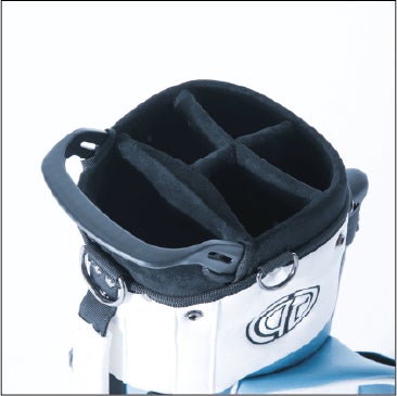 井上莉加プロが素材とカラー・デザインをディレクションしたキャディーバッグ。女性ゴルファーの目線での使い勝手を反映させて7.5inch の細身なスタイルでも収納スペースはしっかり確保。カラーリングも上品な光沢感のある合成皮革としなやかなフェイクスエード素材のバイカラーの組み合わせがよりラグジュアリー感が満載。豊富な展開カラーも魅力の一つ。