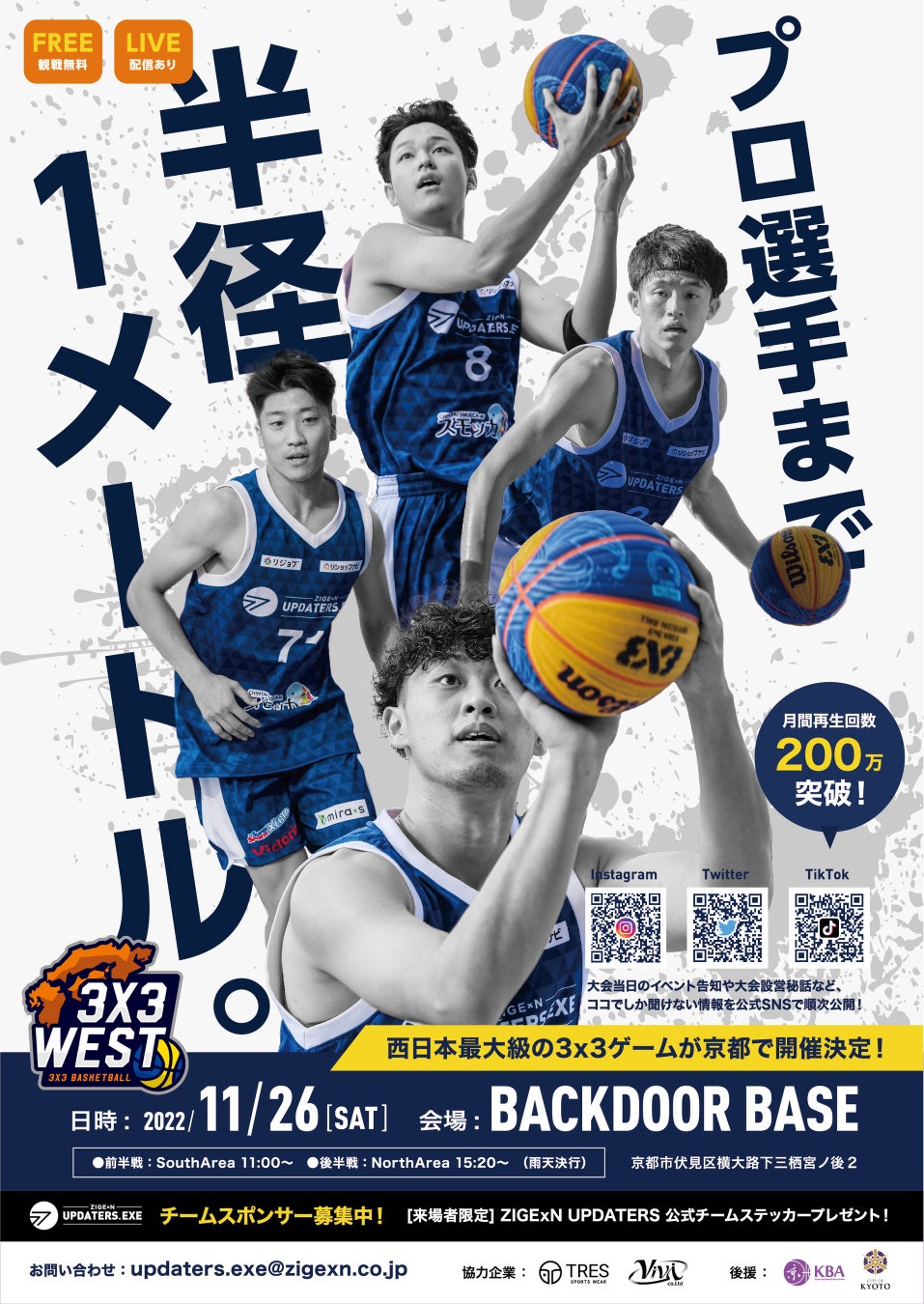 株式会社じげん(本社:東京都港区、代表取締役 社長執行役員CEO:平尾丈、東証プライム:3679、以下じげん)がオーナーを務める3×3(3人制バスケットボール)のプロチーム「ZIGExN UPDATERS.EXE(じげんアップデーターズ)」は、西日本に本拠地を置くチームが集結する大会、『3x3WEST(スリーエックススリーウエスト)』の誘致大会を11月26日(土)に京都府京都市にて開催することをお知らせいたします。