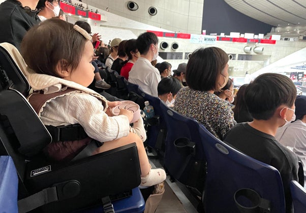 障がいの有無にかかわらずキッズチェアとしてお使いいただける「IKOUポータブルチェア」の導入によって、小さなお子さま連れのファミリーがスポーツ観戦をより身近に感じられる、インクルーシブなアリーナ環境を実現します。
