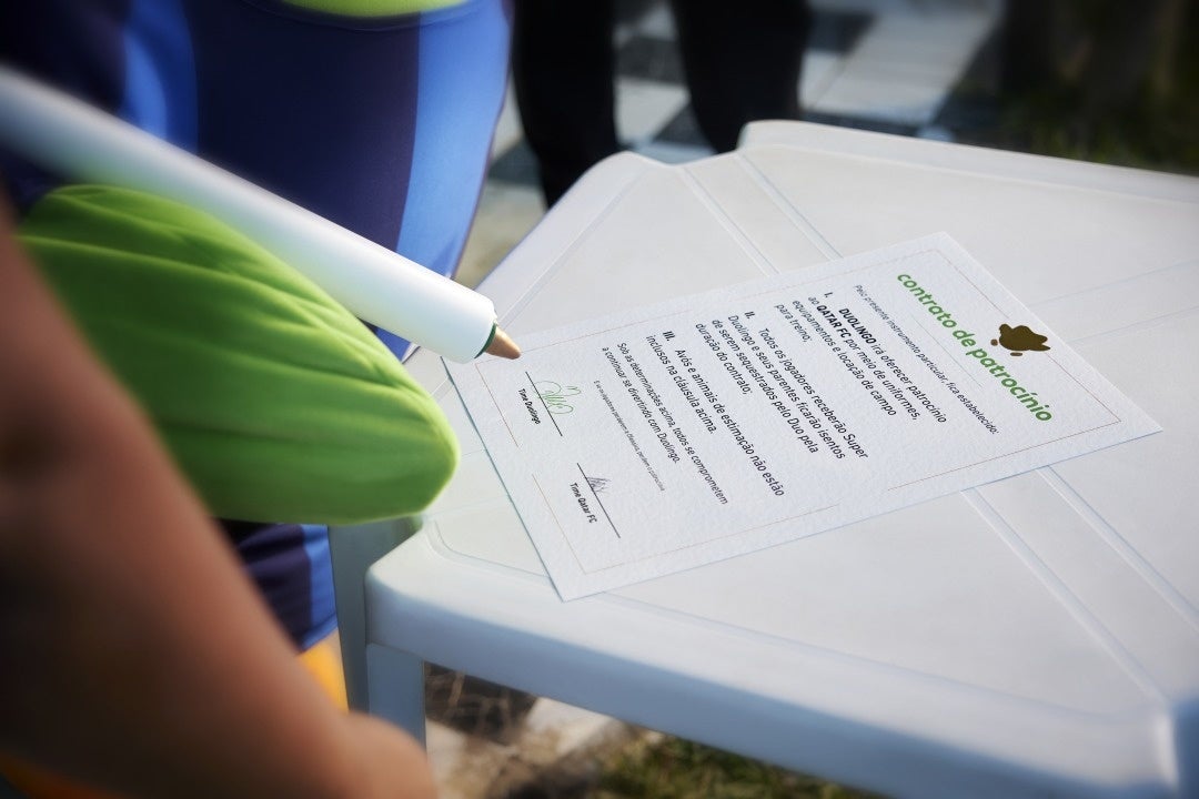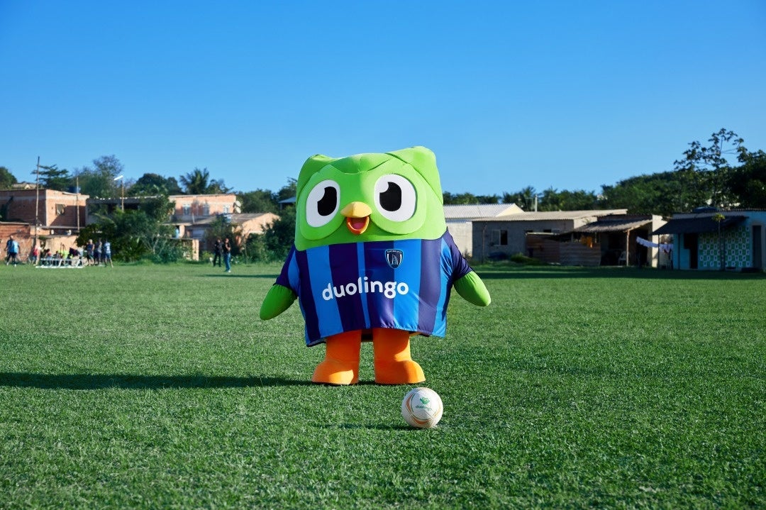 そんなわけで、Duolingoは2022年、オフィシャルスポンサーとなりました。といってもそっちの███████ではありません!Qatar F.C.です!Qatar F.C.は、ブラジル・リオデジャネイロの小さな町を拠点とするアマチュアサッカーチームで、スポーツと教育を通じて地域社会を支援しています。今回の遊び心溢れるキャンペーンでは、Duolingoのロゴが入った地元チームの新しいユニフォームが導入され、Qatar F.C.公式マスコットとしてフクロウのDuoが就任します。
