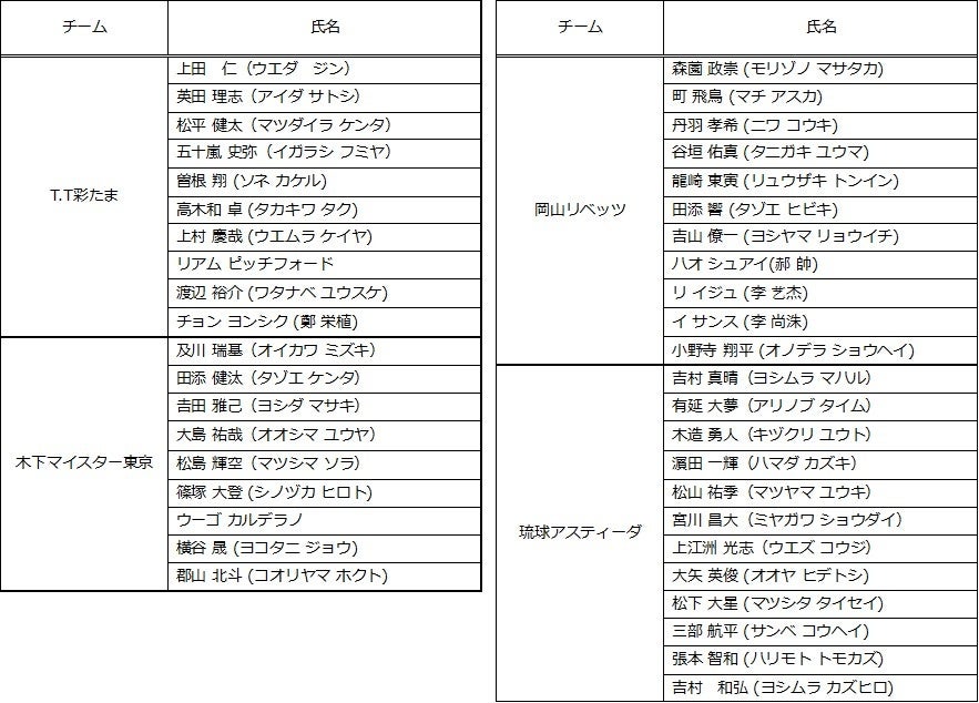 Tリーグでは、2022-2023シーズン 登録完了選手を以下の通りお知らせいたします。