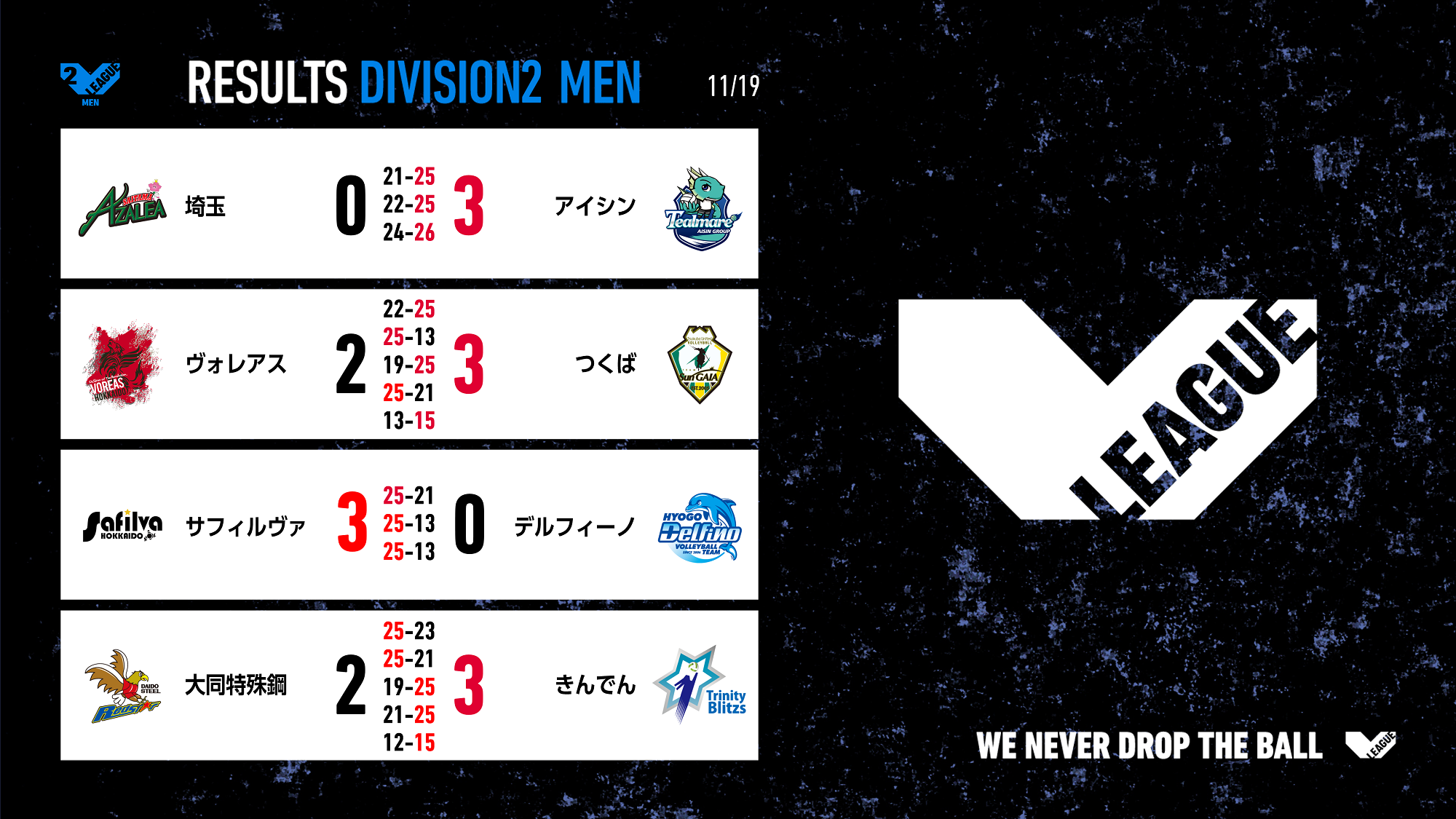 バレーボール国内最高峰リーグ V.LEAGUE【11月19日の試合結果】