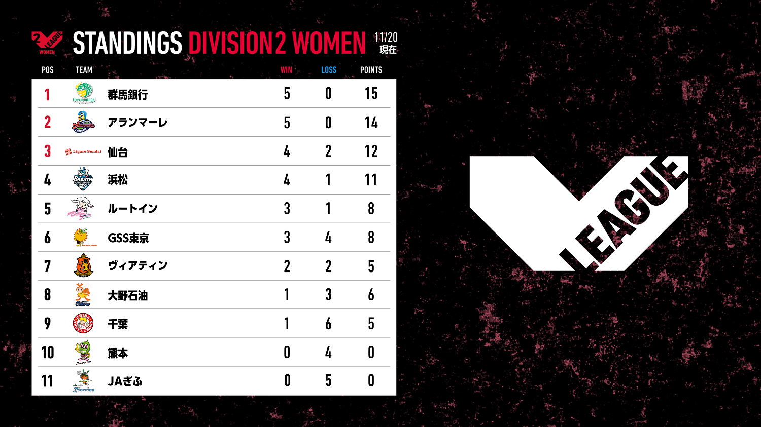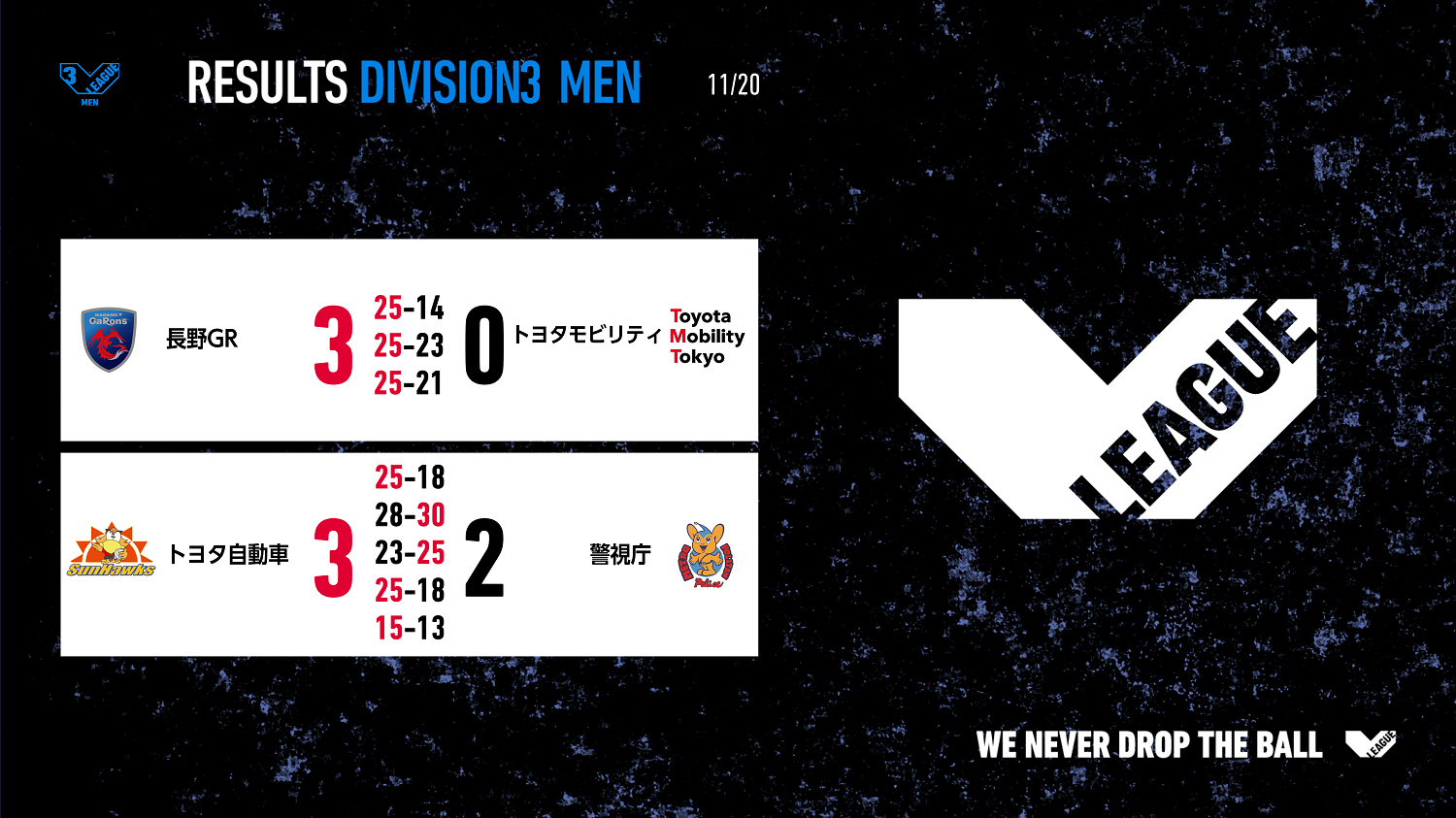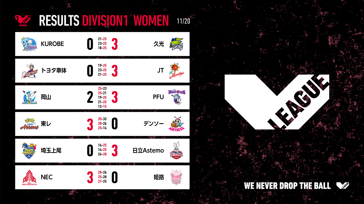 バレーボール国内最高峰リーグ V.LEAGUE【11月20日の試合結果】