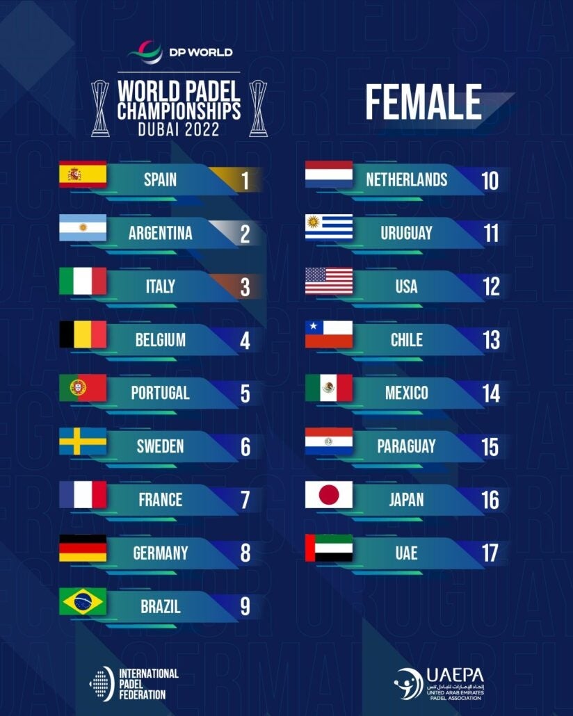 大会URL:https://www.padelfip.com/world-padel-championships-dubai-2022/