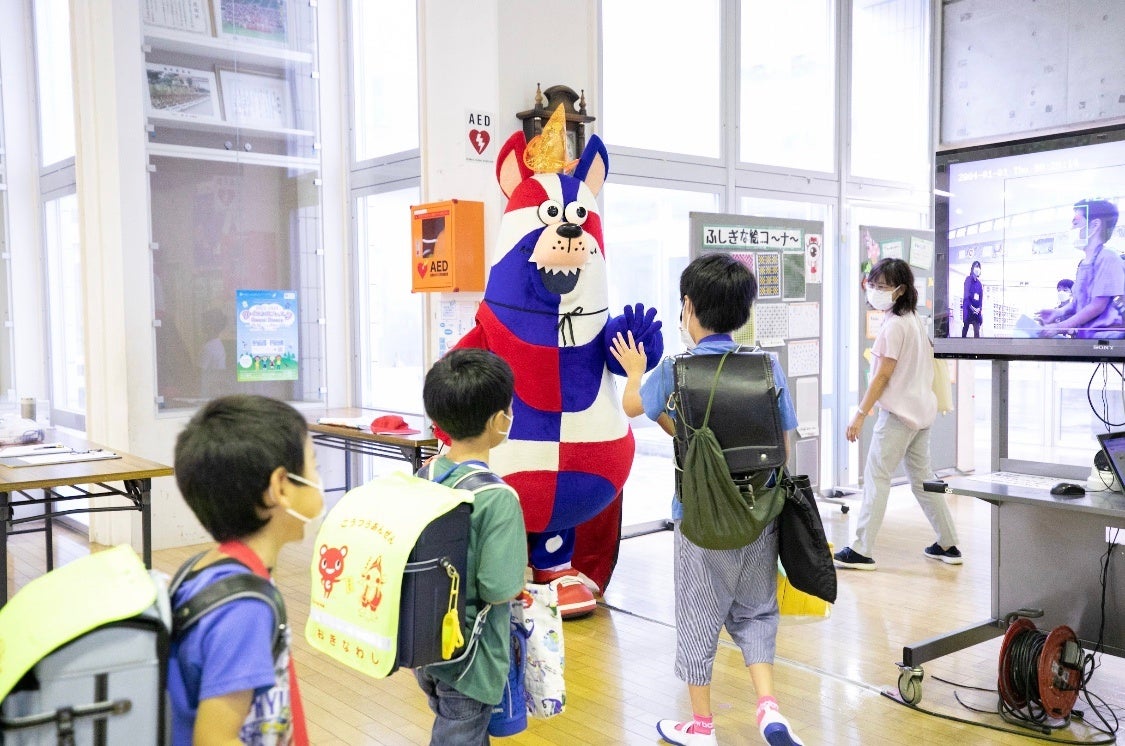10月24日(月)から10月31日(月)までの5日間、「おおきなわ」の活動の一環として、キングスマスコットのゴーディーが沖縄市内の小学校(5校)にて朝のあいさつ運動に参加いたしました。ご協力いただいた各小学校の皆さま、ありがとうございました。