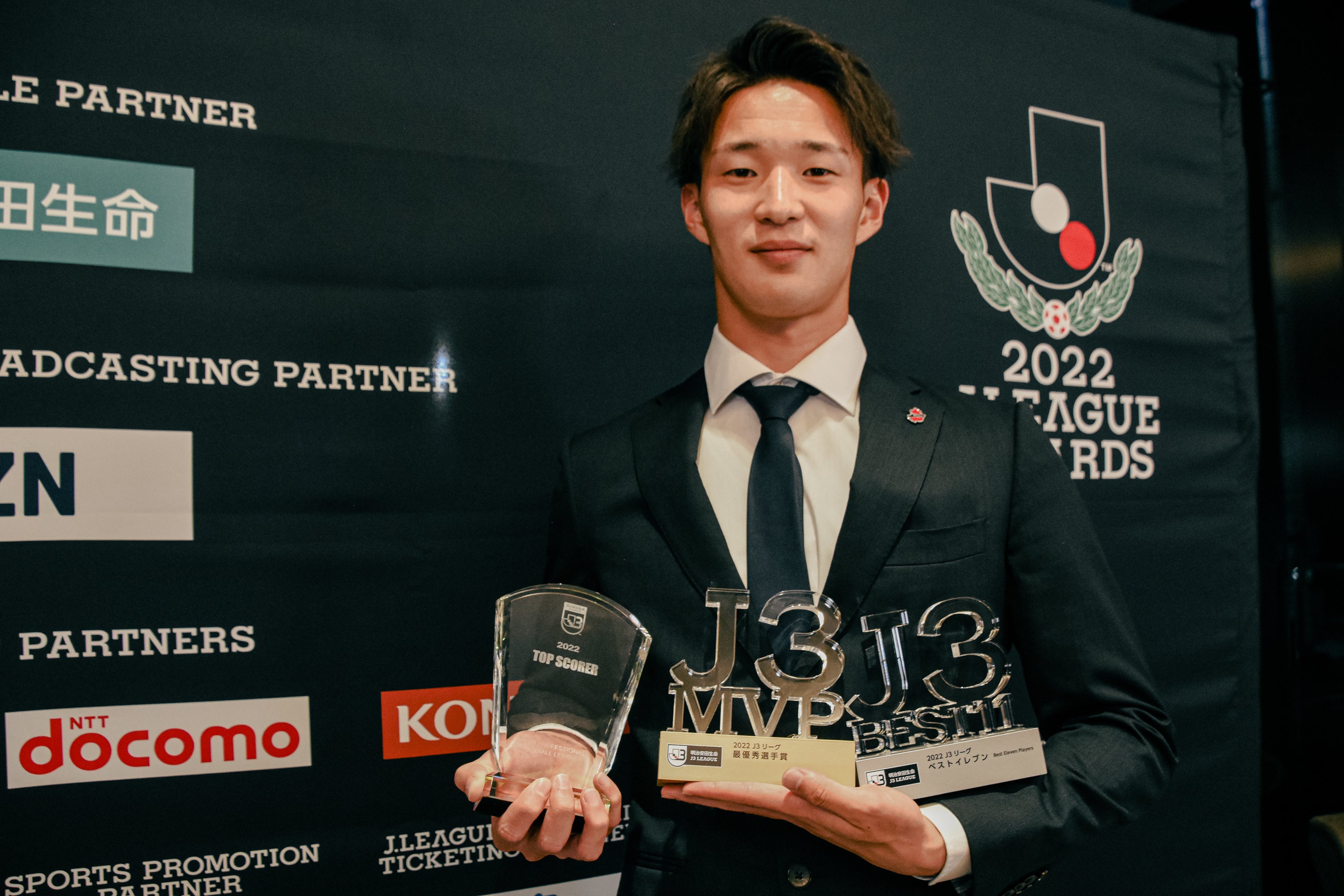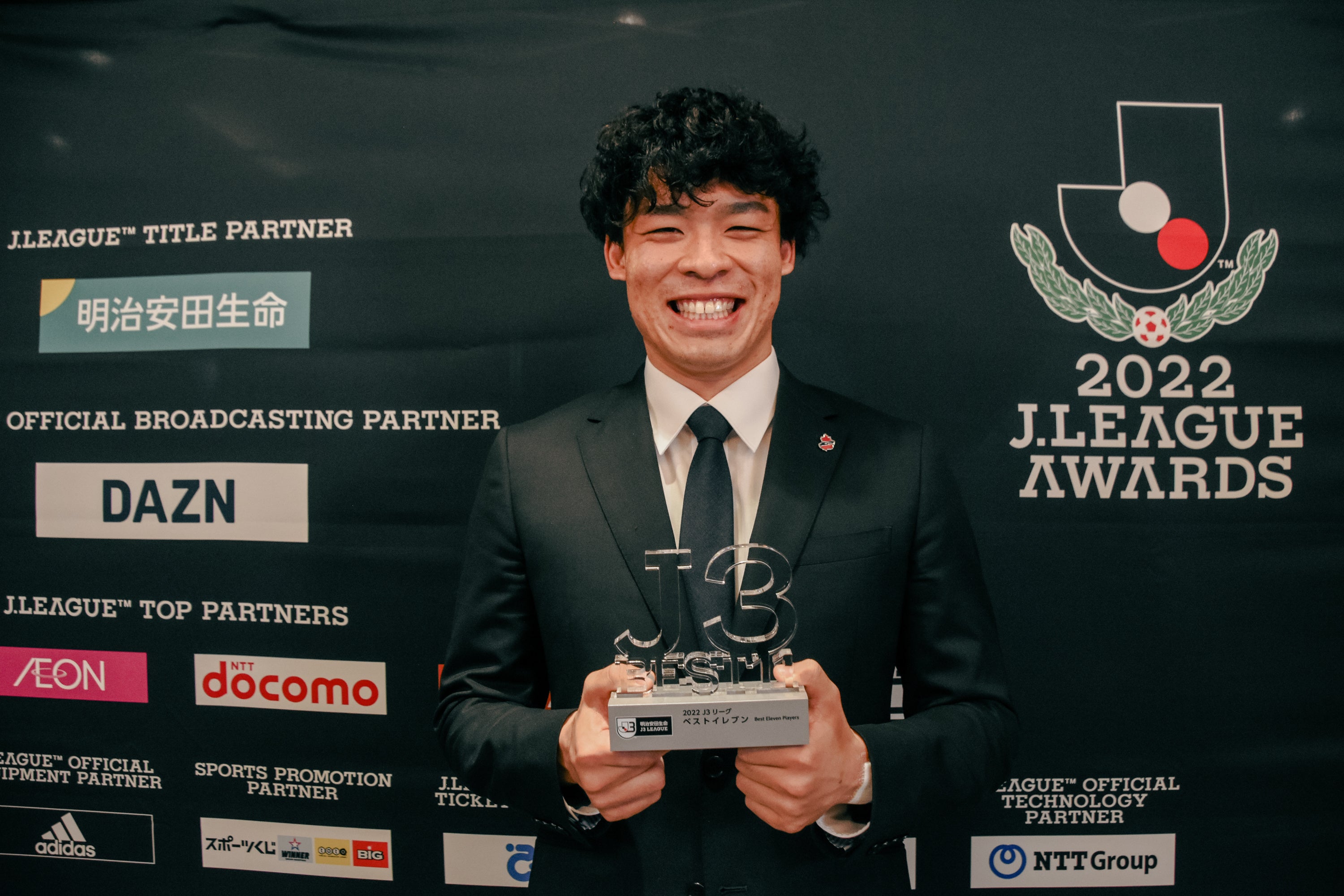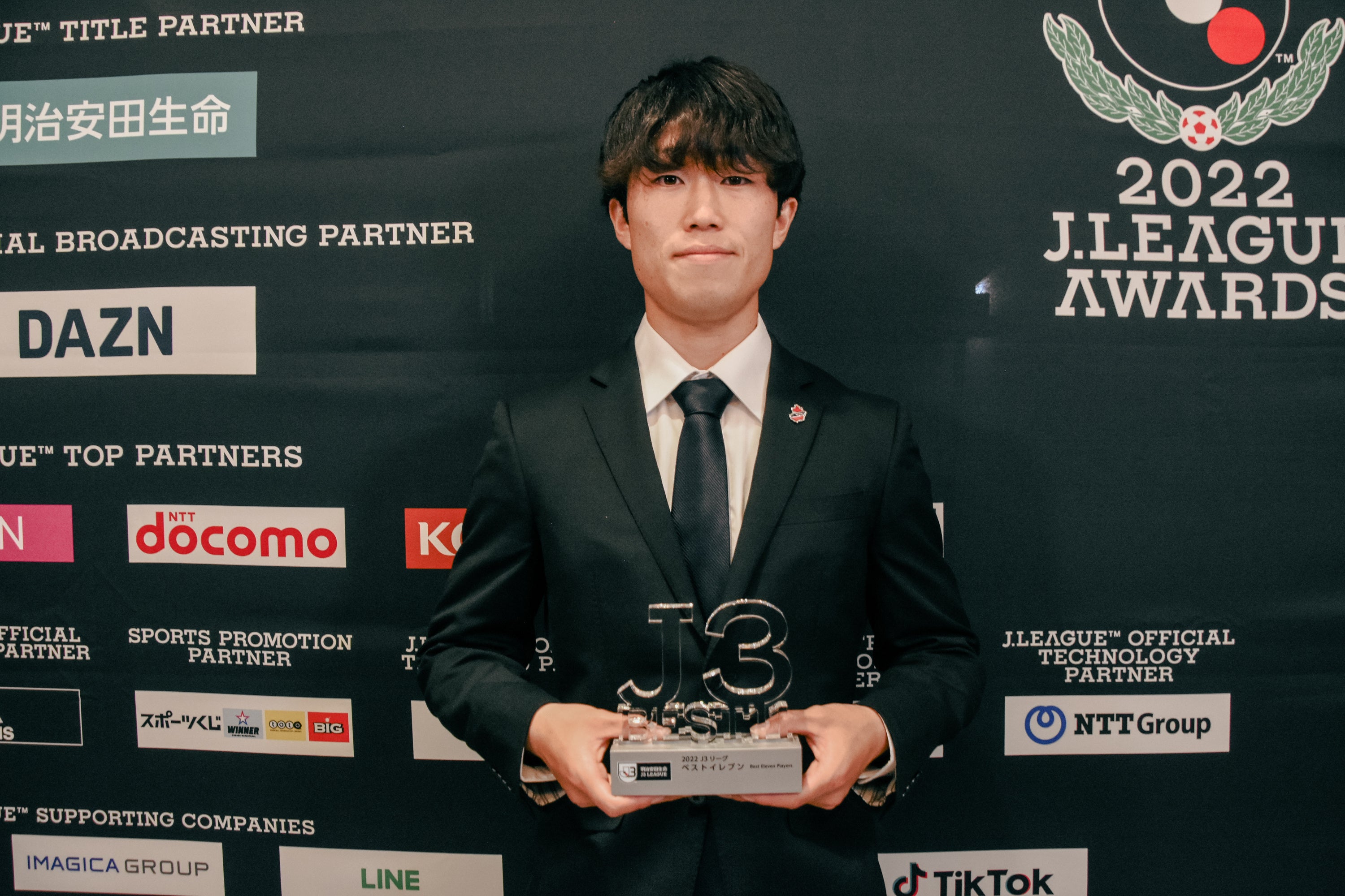 シーズン序盤は試合に出られない時期も多かったですが、監督をはじめスタッフの皆さんが自分の足りないところを言ってくれて、一日一日を100%でやっていこうっていうのを目標に置いていたので、その積み重ねがこういう結果になったんじゃないかなと思います。もっと上のカテゴリでどれだけできるか挑戦したいですし、J2に上がってもこのような賞が獲得できるようにまた一日一日を積み重ねて頑張っていきたいと思います」