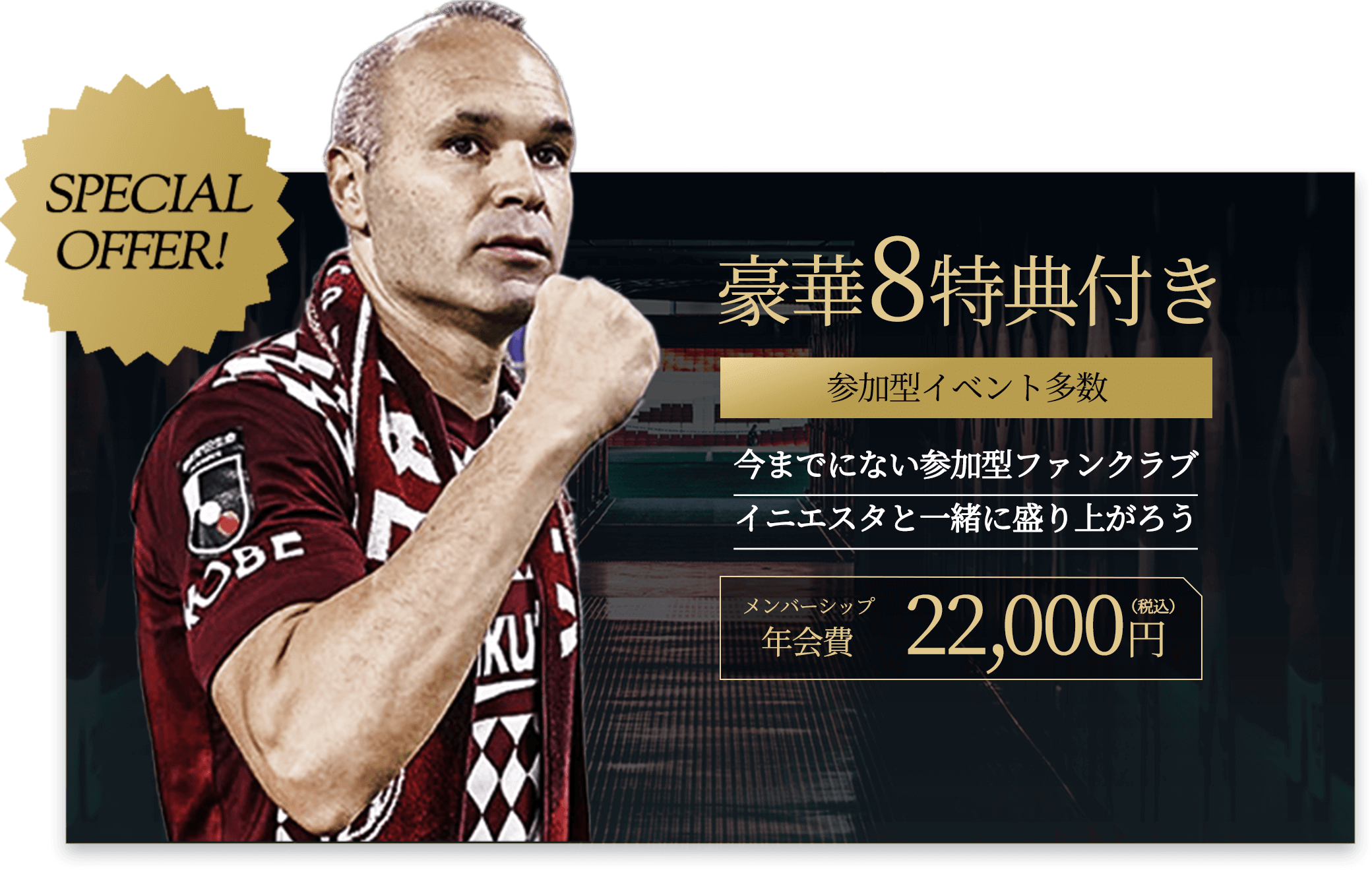 さらに、イニエスタ選手が主催するチャリティーマッチへの会員様全員招待も予定されており、出場する選手を実際にファンが希望できるなど、「ファンが関わり、何かが生まれる」という新しい価値を生み出す画期的な相互交流型ファンクラブを目指します。
