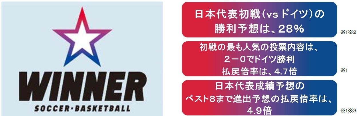 ※2 「WINNERサッカー1試合予想」のうち、日本代表が勝利する投票内容(No.8~No.14に投票された割合の合計です。