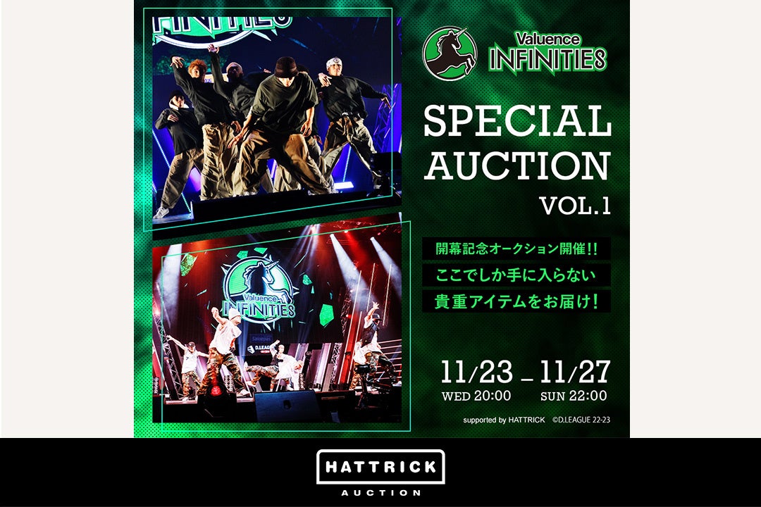地球、そして私たちのために循環をデザインする「Circular Design for the Earth and Us」をパーパスに掲げ、大切なことにフォーカスして生きる人を増やすことを目指すバリュエンスジャパン株式会社(本社:東京都港区、代表:六車 進、以下 当社)は、同社が運営するスポーツチーム公認オークション「HATTRICK(https://auction.hattrick.world/)」にて、2022年11月23日(水・祝)よりValuence INFINITIES D.LEAGUE 22-23 SEASON SPECIAL AUCTION vol.1を開催いたします。