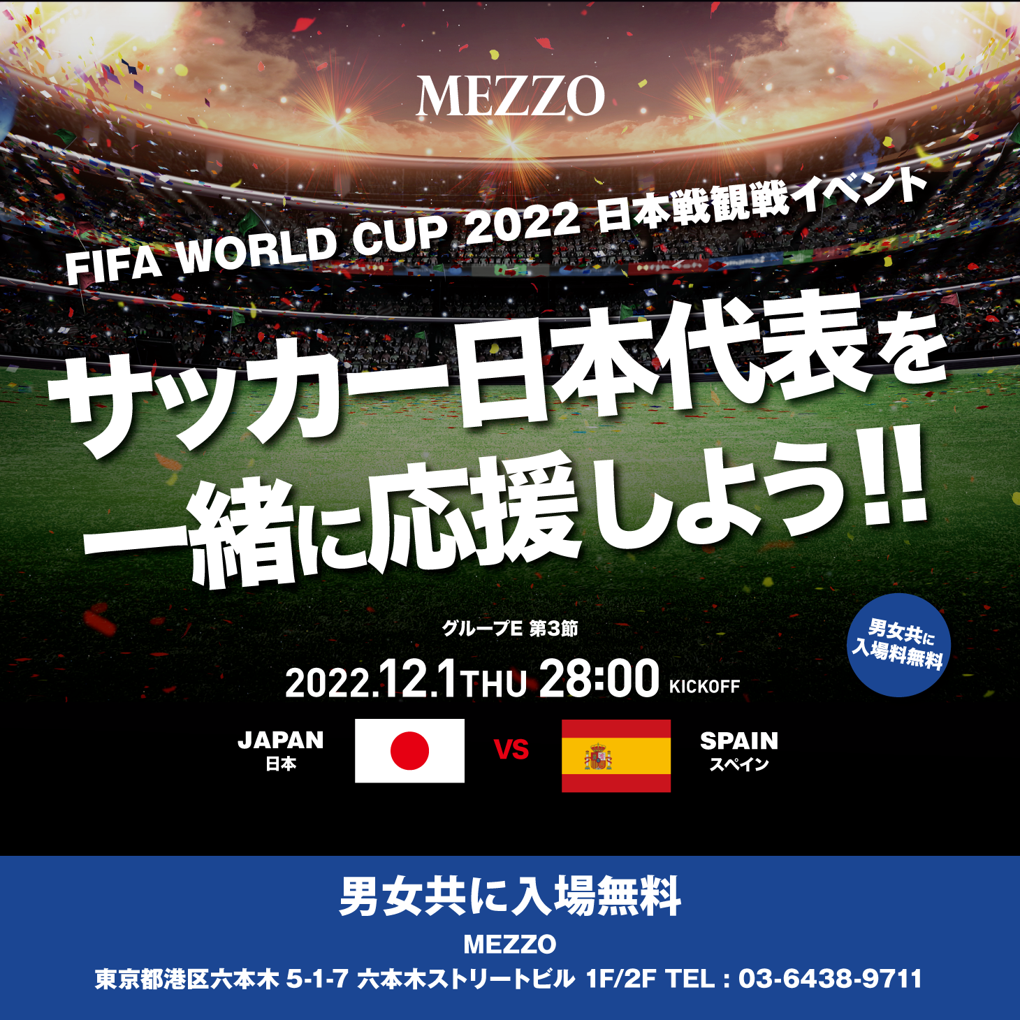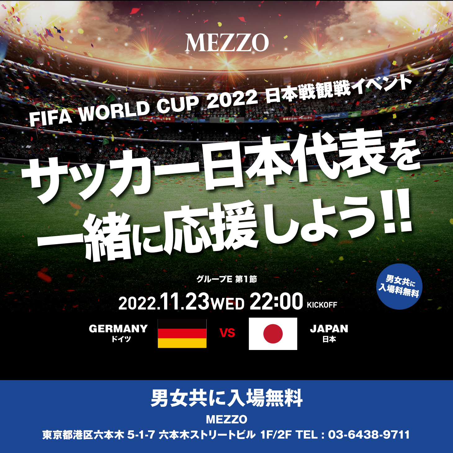 11/23, 27,12/1 六本木MEZZOでサッカー日本代表をみんなで応援しよう!