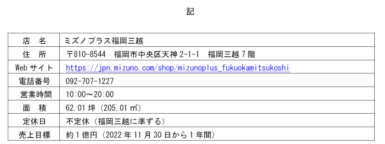 「ミズノプラス福岡三越」(イメージ)