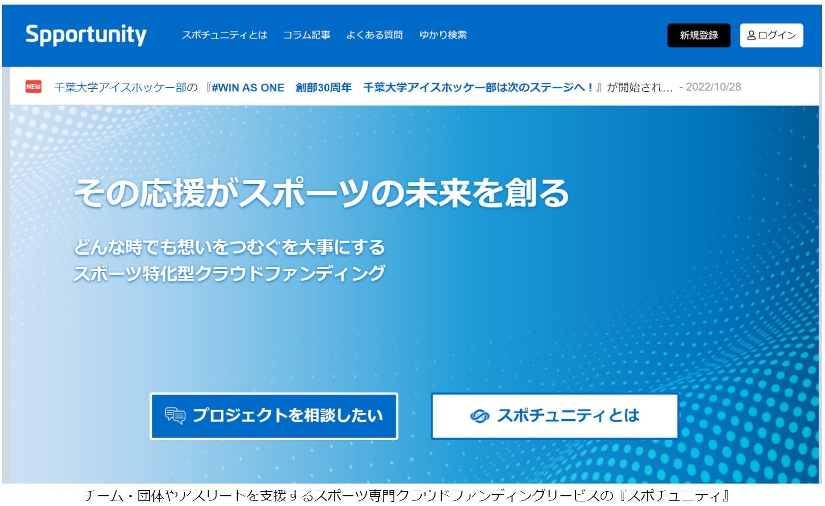 夢に向かってチャレンジする者へ、平等な機会と夢を育む環境づくりを目指し、「始める前から、スタートラインに立てない。チャレンジできないという社会を変える」という理念に基づき事業を展開するスポチュニティは、ひたむきにスポーツに取り組む若者、地方に根付いたプロクラブチームやアスリート、アマチュアチーム、大学や高校の運動部、そしてそれを応援する人々を支援するためのクラウドファンディングサービスを提供しております。