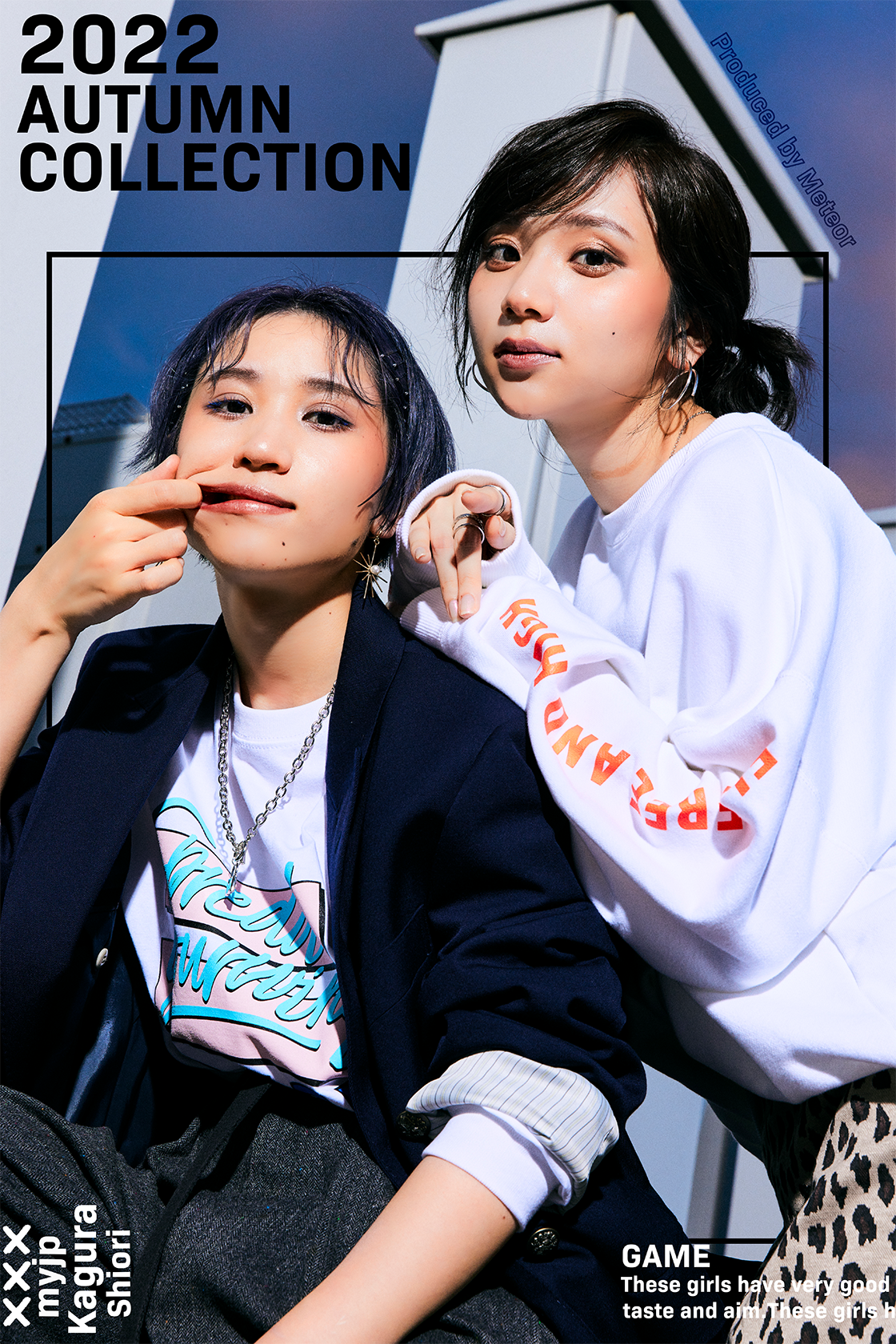Autumn Collectionモデルに神楽 栞(虹色の飛行少女 青色担当)、myjp(Meteorストリーマー)を起用した。