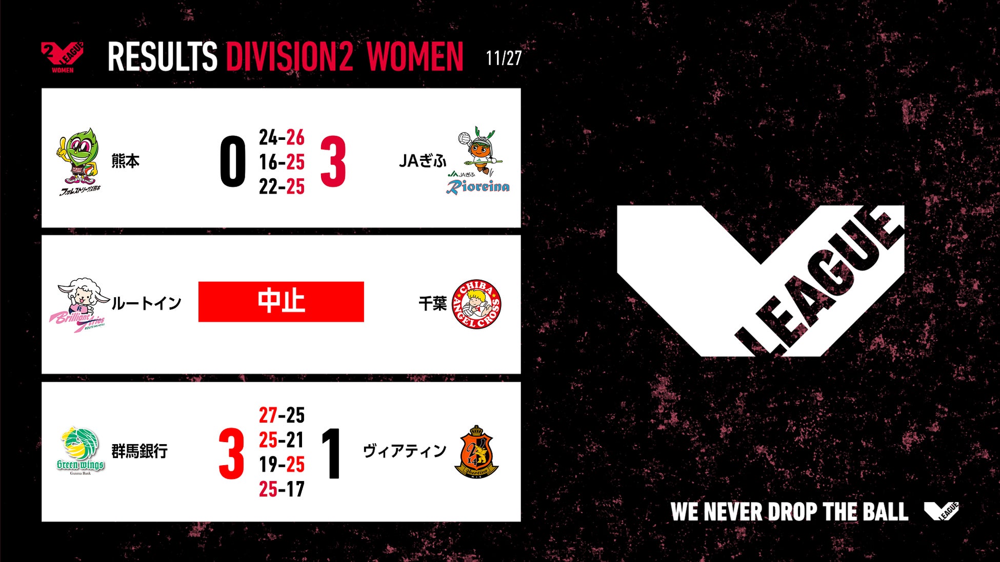 バレーボール国内最高峰リーグ V.LEAGUE【11月27日の試合結果】