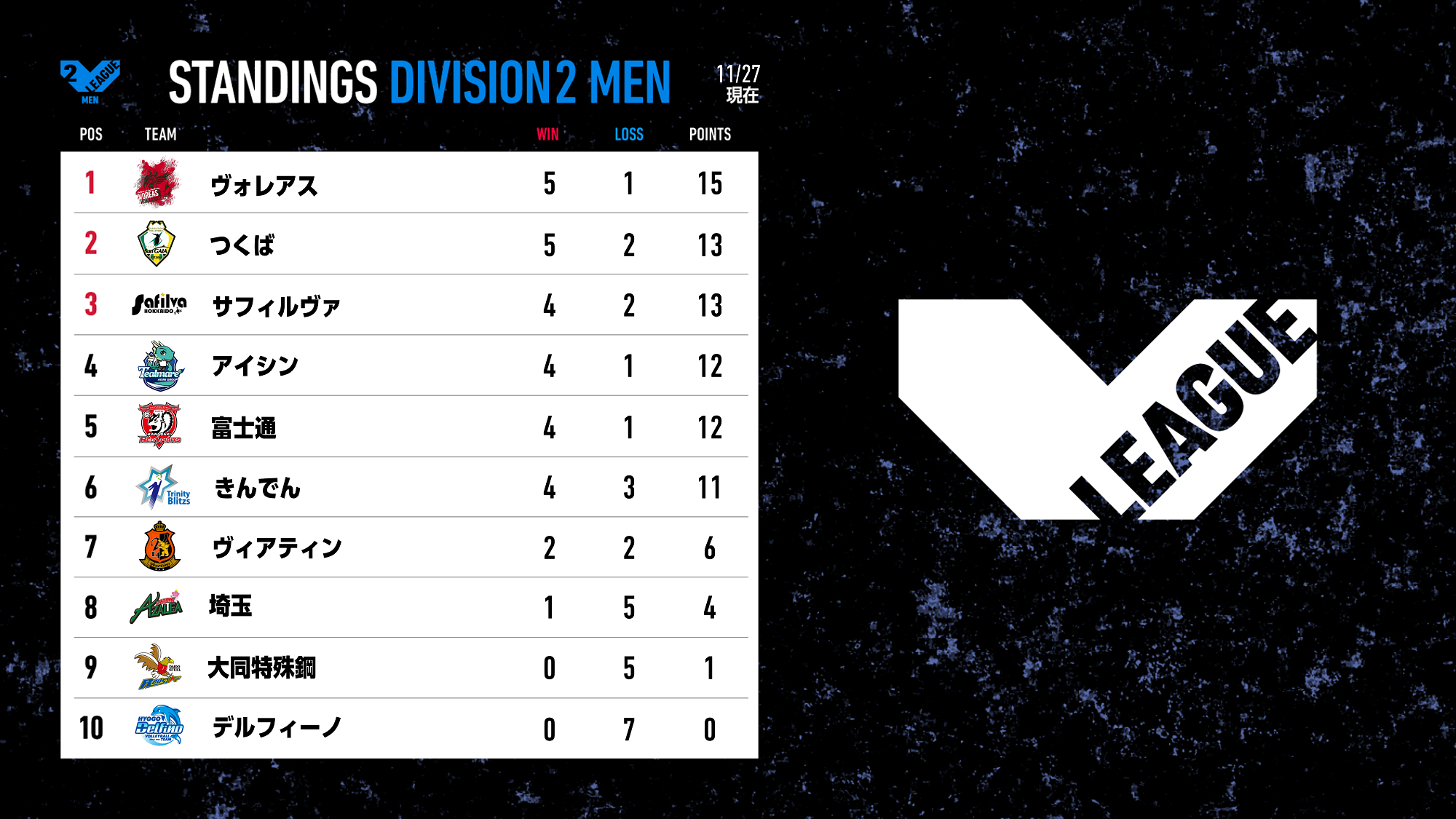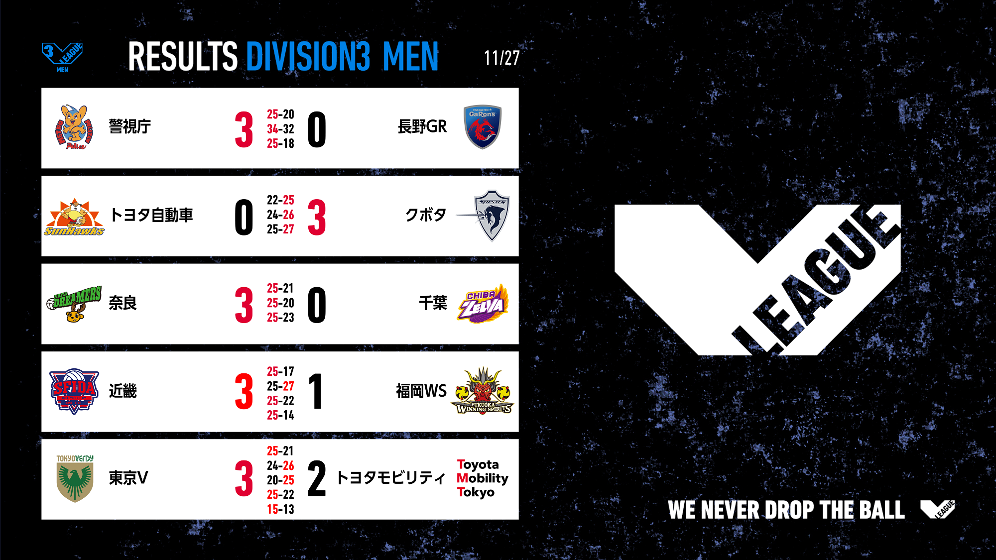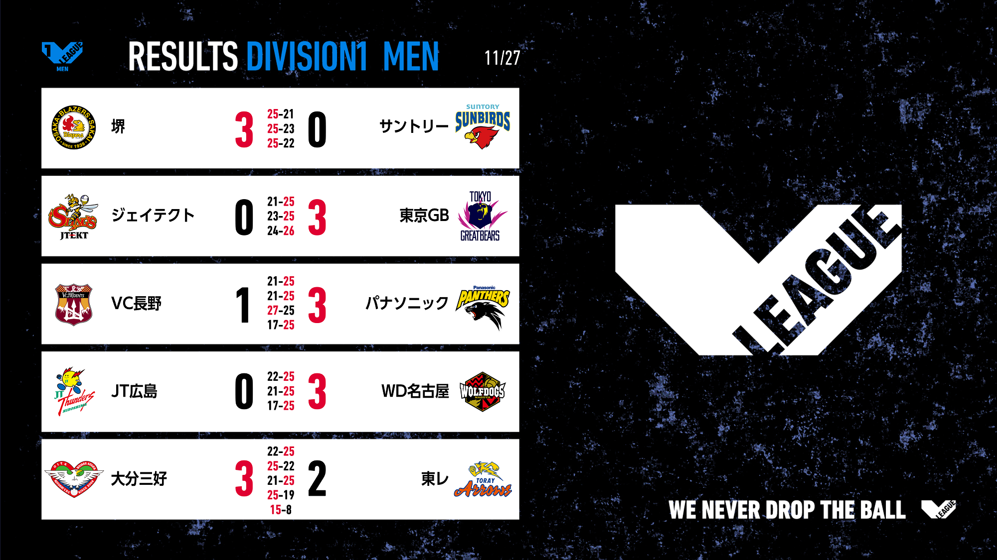 バレーボール国内最高峰リーグ V.LEAGUE【11月27日の試合結果】