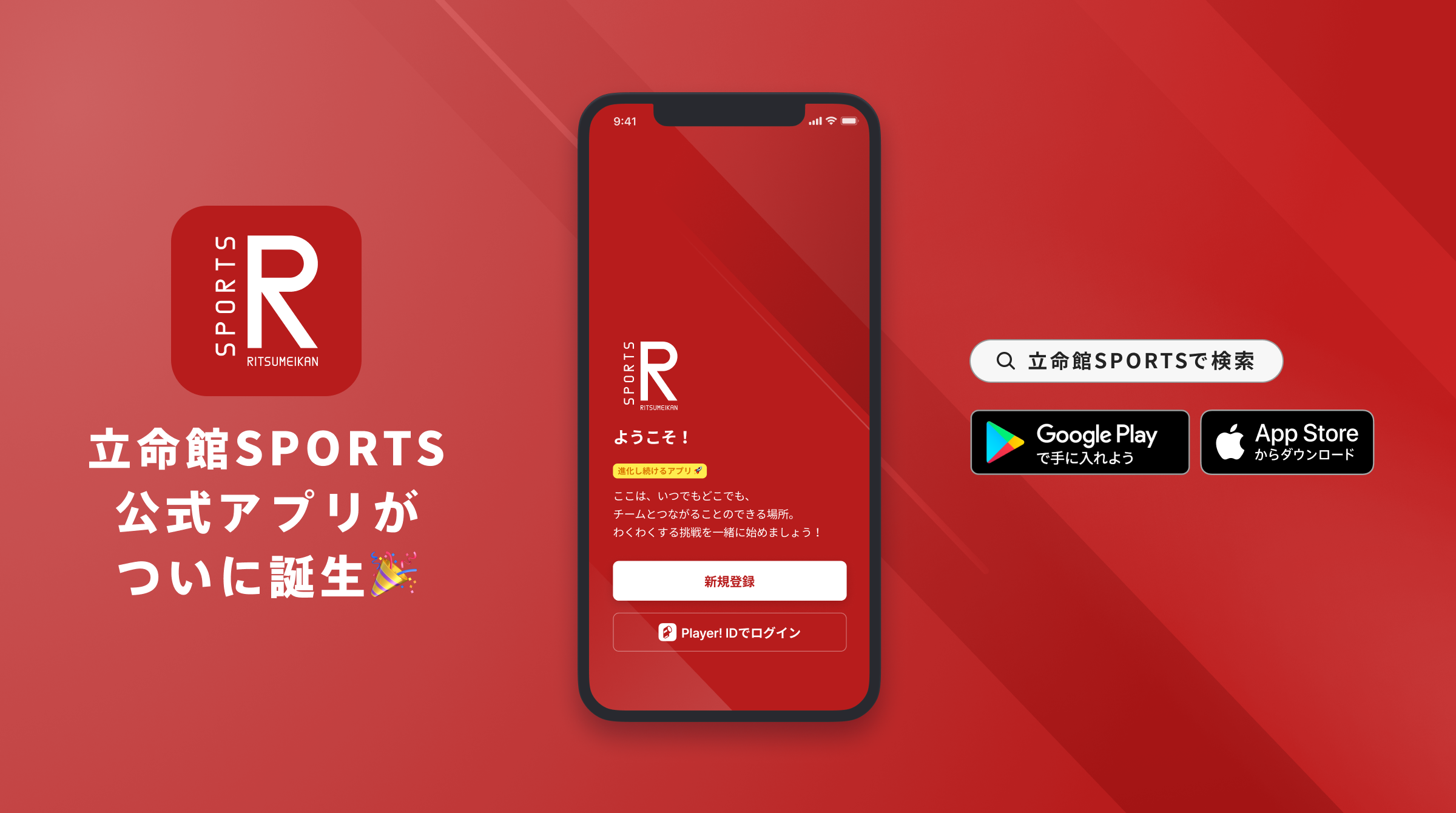 AppStoreもしくはGooglePlayで「立命館スポーツ」と検索していただくか、下記をクリックすることでアプリ取得画面にリンクします。どうぞお楽しみ下さい。