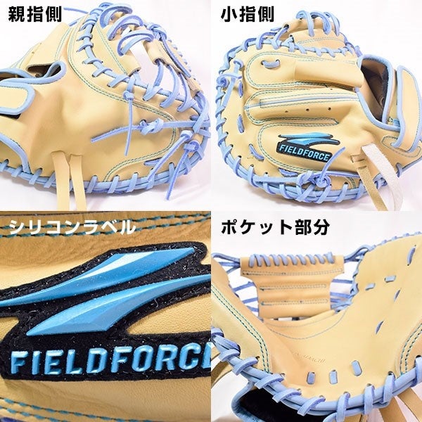 そこで本製品では、フィールドフォース独自の親指マチが短い型を採用し、小さくてもポケットが深く捕球しやすい形状になっています。