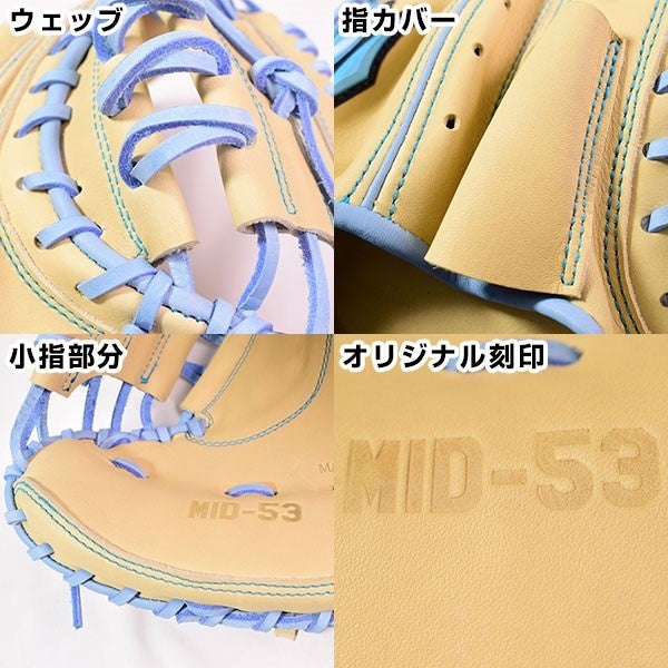 ヘリカラーと合わせたブルーのシリコンラベルと、緑川さんオリジナルの「MID-53」の刻印入り。