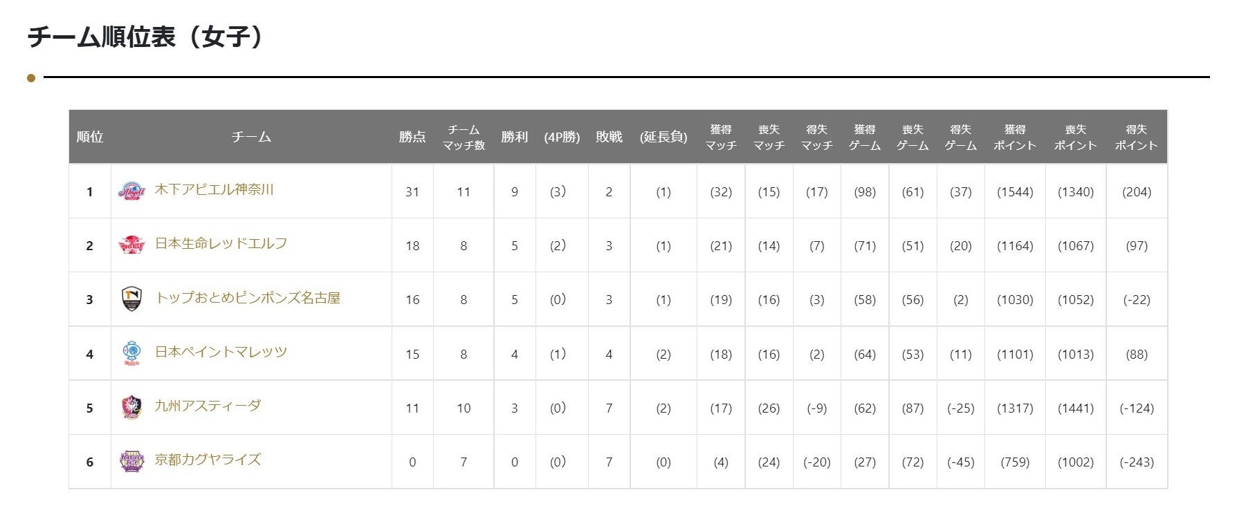 ※木下アビエル神奈川、トップおとめピンポンズ名古屋、日本ペイントマレッツ、先週に試合はございません。