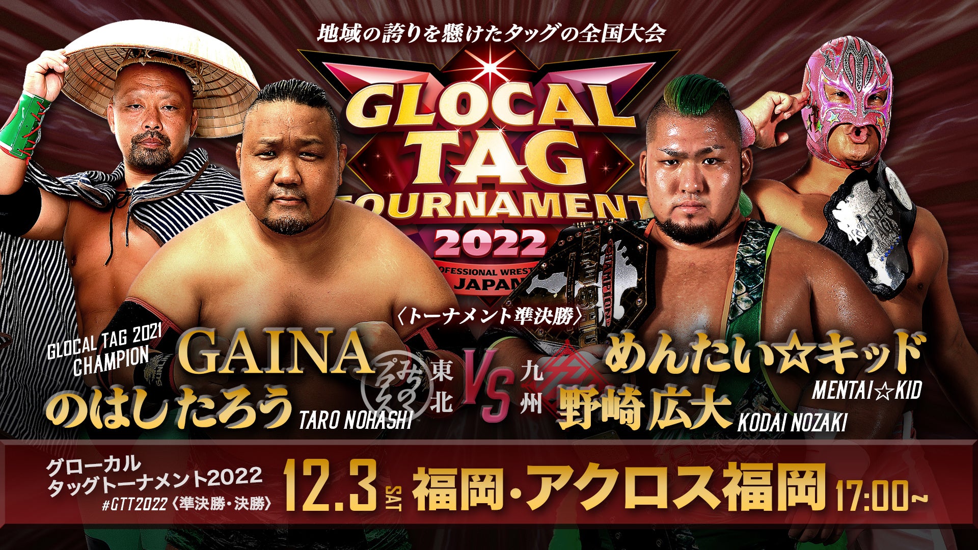 日本一の地方ローカルプロレス団体を決定する「全国プロレス選手権大会 グローカル・タッグトーナメント2022」が12月3日(土)福岡でいよいよ決勝戦を迎える。
