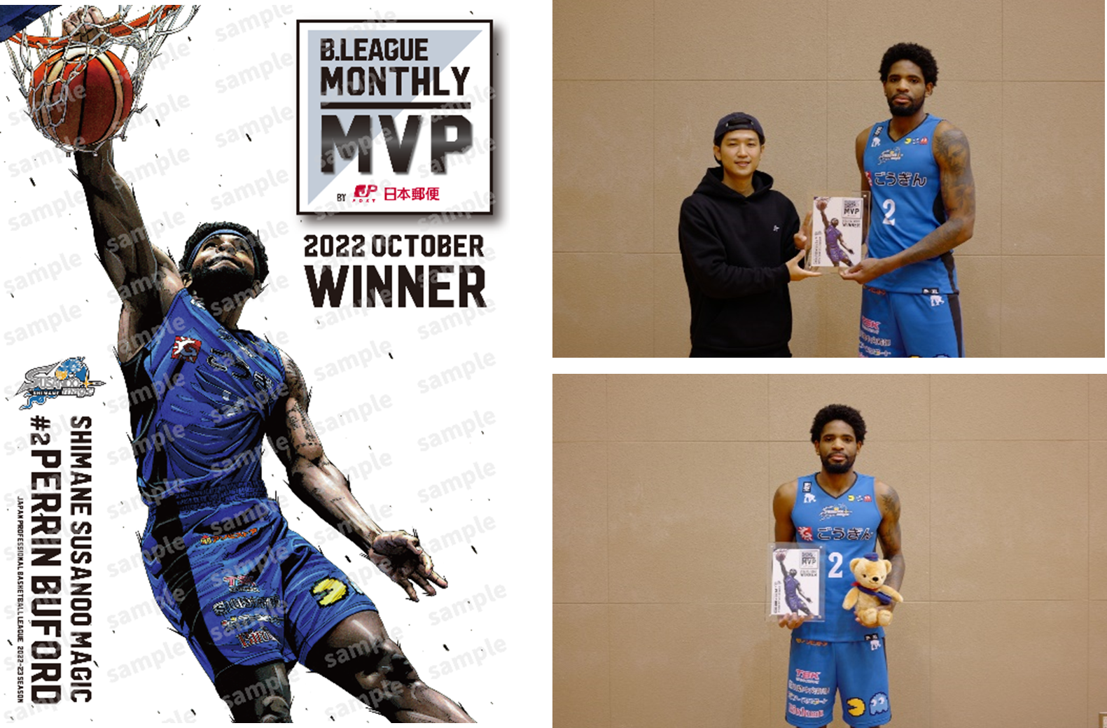 今シーズン最初となる10月度のB.LEAGUE Monthly MVPには、ぺリン・ビュフォード選手(島根スサノオマジック)が選出され、11月24日(木)に表彰盾の贈呈が行われました。