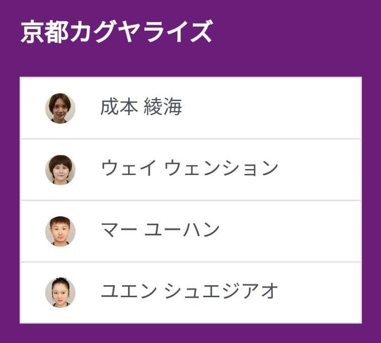 「トップおとめピンポンズ名古屋 vs 京都カグヤライズ」のベンチ入り選手を発表いたします。