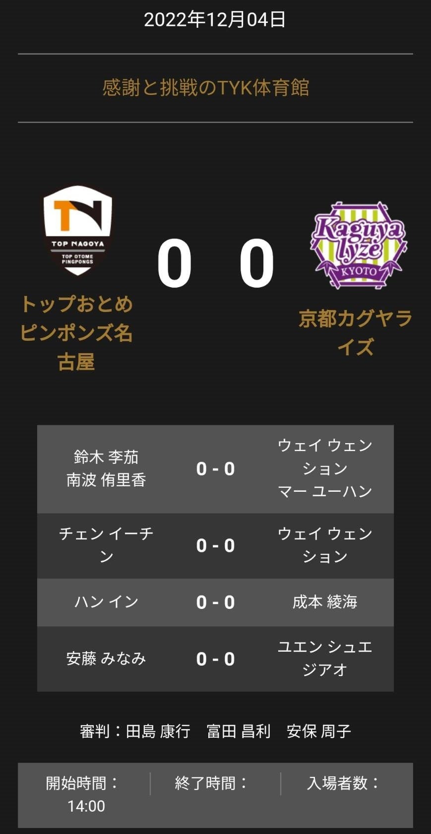 トップおとめピンポンズ名古屋 vs 木下アビエル神奈川 対戦オーダーが発表されました。