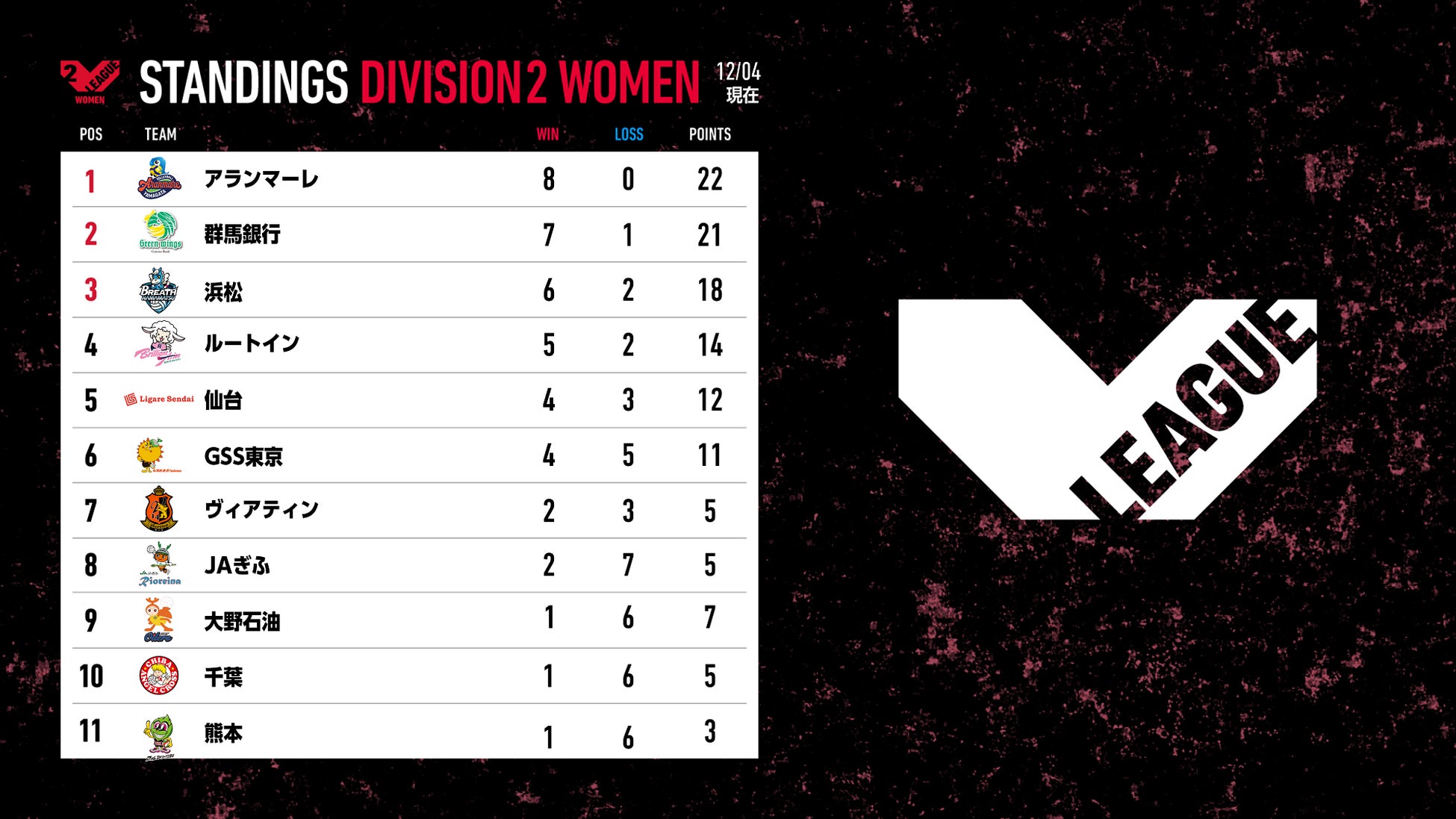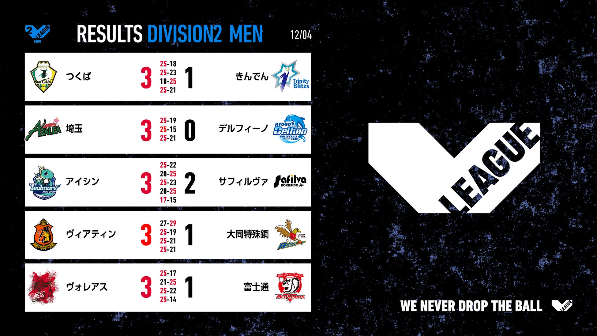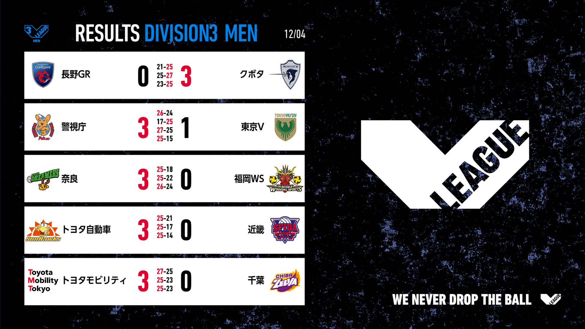 バレーボール国内最高峰リーグ V.LEAGUE【12月04日の試合結果】