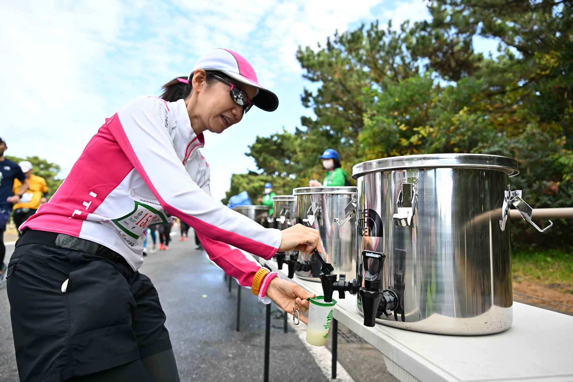 そこで、マラソン大会の新たなスタイルとして、ランナーは全員マイボトル・マイカップを持参するというルールを設定。補水は、コース上に200ヶ所以上平均200m置きに設置された2,500個以上のジャグ(給水器)で行います。これはペットボトルやプラカップゴミを出さないマラソン大会で、環境配慮型のイベントスタイルとしては世界初の挑戦となります。