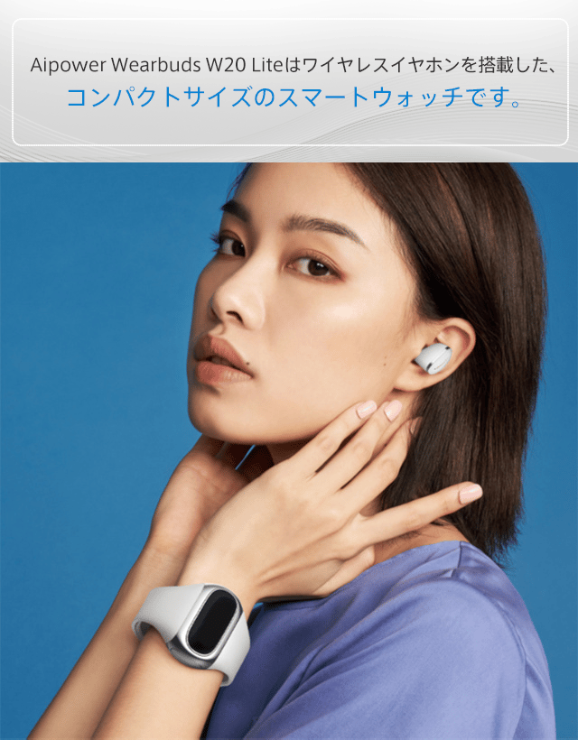 【Aipower Wearbuds W20 Lite】はワイヤレスイヤホン搭載のコンパクトスマートウォッチ。