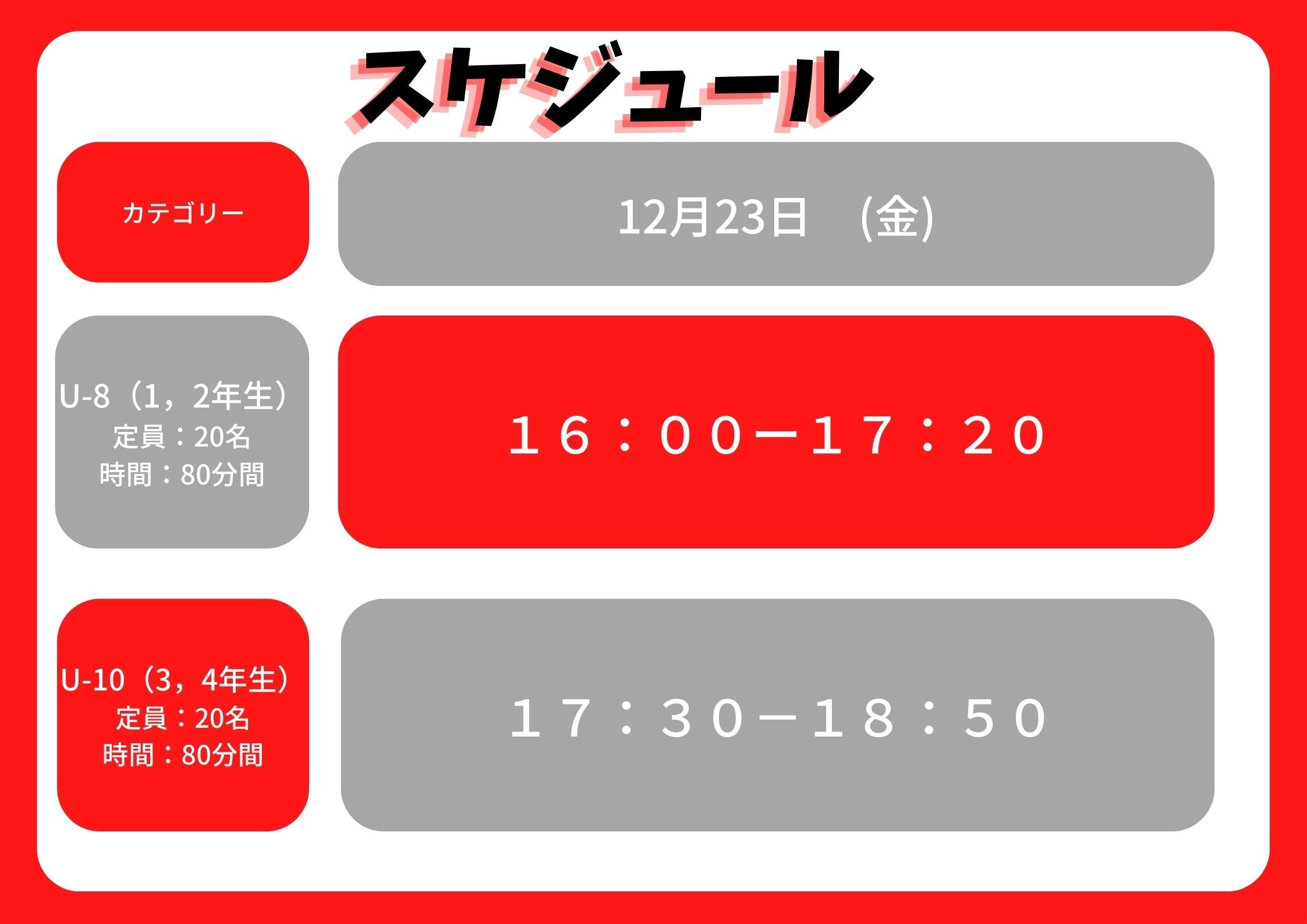 12月23日(金)に東急Sレイエス フットボールスクール 聖蹟桜ケ丘にて、『レガッテ』をテーマにトレーニングイベントを行います。ウォーミングアップ→トレーニングの流れで、最後はゲームで終わるので相手を突破して得点できるように頑張りましょう。皆様のご参加をお待ちしております。