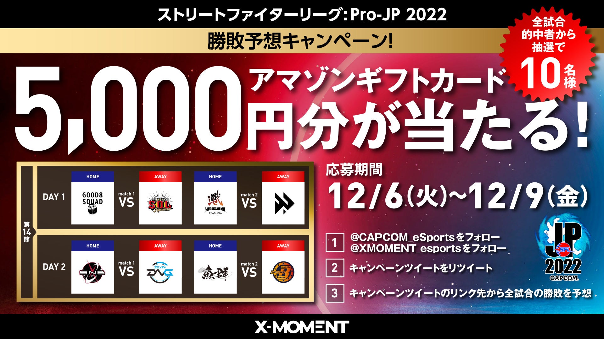 - 「ストリートファイターリーグ: Pro-JP 2022」第14節勝敗予想キャンペーン実施中!