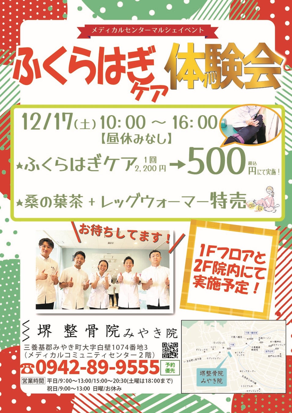 - 堺整骨院 みやき院が行う「ふくらはぎケア体験会」について