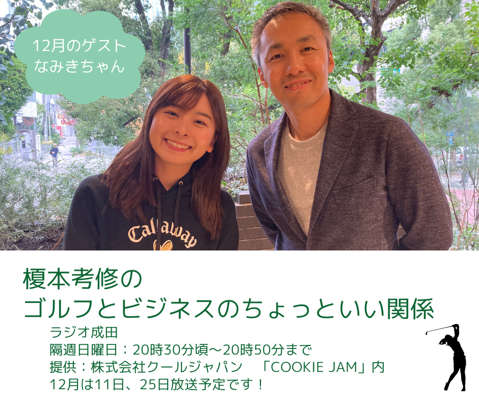 一般社団法人日本インドアゴルフ協会の代表理事・榎本考修がメインパーソナリティを務める「榎本考修のゴルフとビジネスのちょっといい関係」の12月のゲストはなみきちゃん!