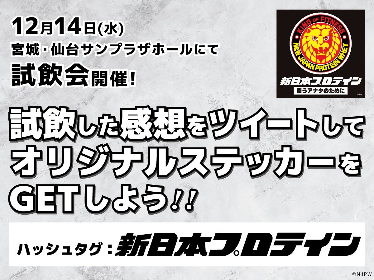 株式会社ブシロード(本社:東京都中野区、代表取締役社長:木谷高明)のグループ会社である株式会社ブシロードウェルビー(本社:東京都中野区、代表取締役社長:大場隆志)は、2023年1月発売予定『新日本プロレス』所属の棚橋弘至選手が監修するプロテイン『新日本プロテイン』につきまして、12月14日(水)に宮城・仙台サンプラザホールで行われる「WORLD TAG LEAGUE 2022」「SUPER Jr. TAG LEAGUE 2022」優勝決定戦での試飲会の開催が決定いたしました。また、『新日本プロテイン』ブランド公式サイトをリニューアルし、棚橋弘至選手による『新日本プロテイン』解説動画を公開いたしました。商品の魅力がたっぷり伝わる内容となっておりますので是非ご覧ください。